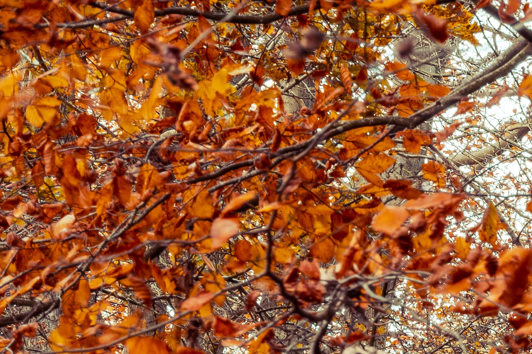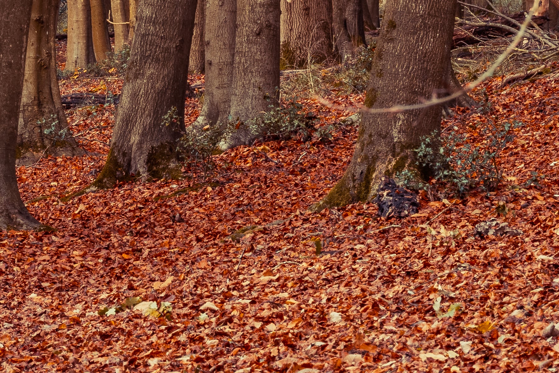 As the forest stretches beyond sight, the harmonious blend of earthy browns and vibrant autumn foliage enhances the serene mood of the scene. The contrast between the cool, shaded areas and the sunlit patches of golden leaves adds depth and warmth to the composition. This image perfectly captures the fleeting beauty of fall, offering an inviting escape into nature’s seasonal transformation. Ideal for nature lovers, hikers, and photographers, this quiet woodland path embodies the essence of autumn’s peaceful charm.