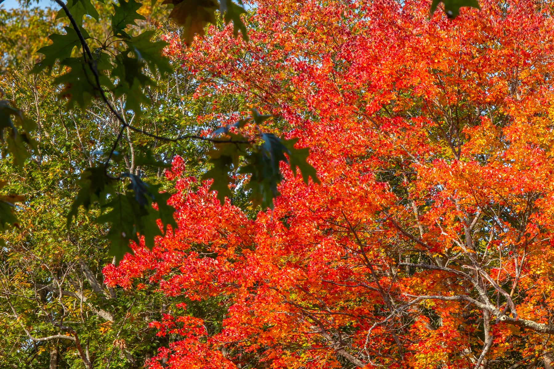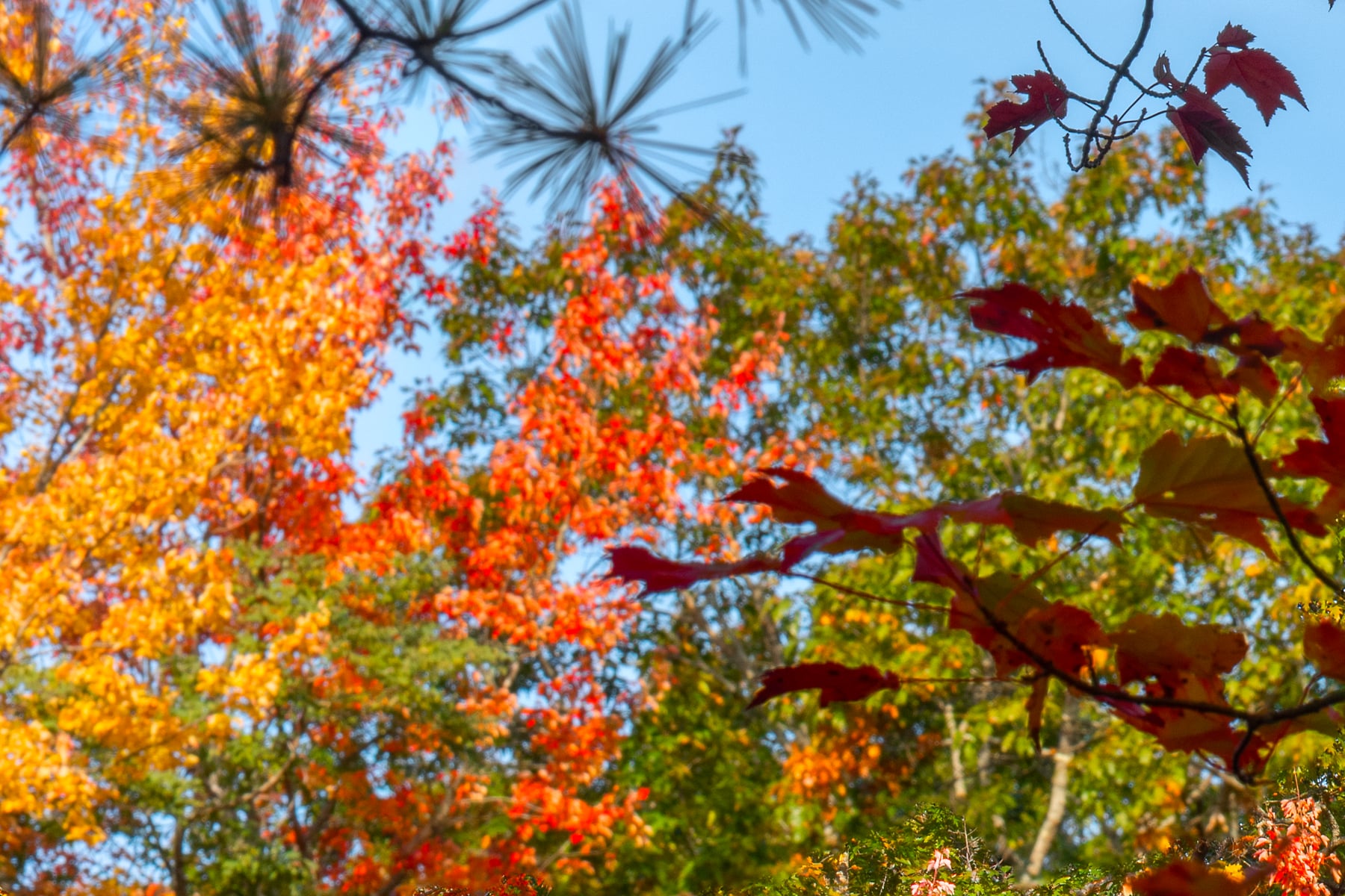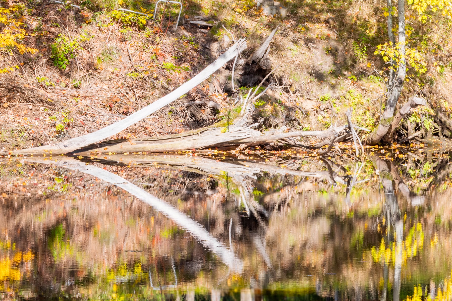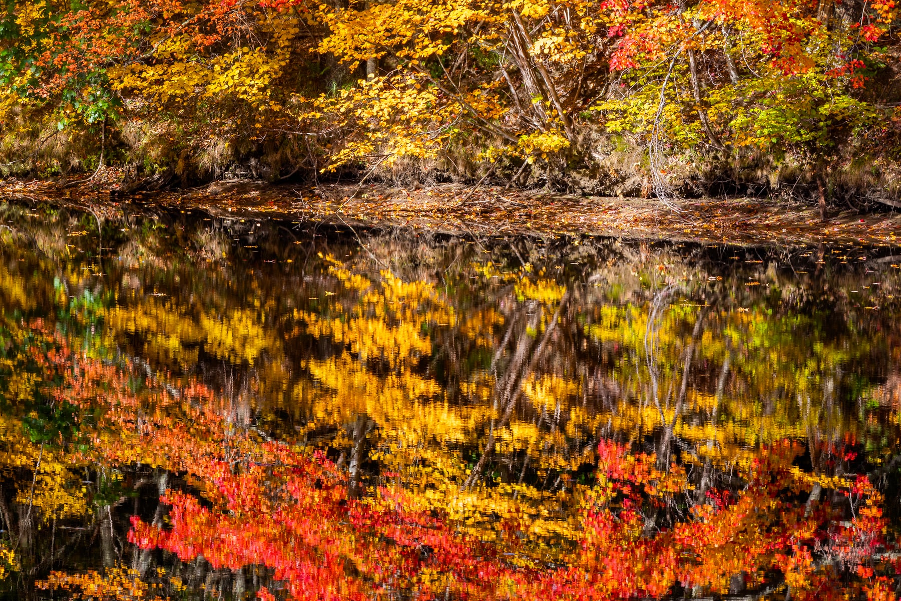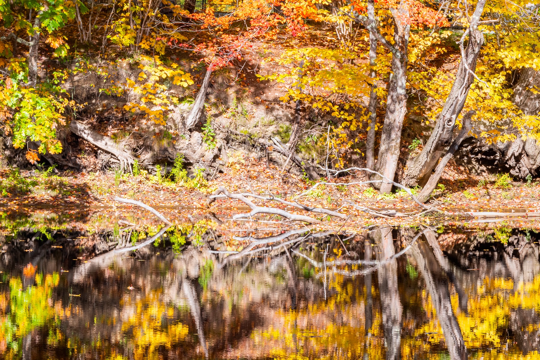 I was heading north on Hwy 113 just north of Baldwin, Maine. It's a nice drive, with many nice views of the Sacco river as it winds northward. With the fall trees in full bloom it was obvious there would be some spectacular opportunities for a photo, but accessibility was going to be the challenge. After finding a spot to pull over, the river was still quite occluded by the brush on the nearside bank. Since the scene was just too good to give up on, I spent some time re-arranging some thick brush that was blocking the view.  The slope was steep and overgrown on the bank where I shot this and the "working quarters" were minute, so I feel quite fortunate to have gotten this spectacular image, especially in such a large size.
