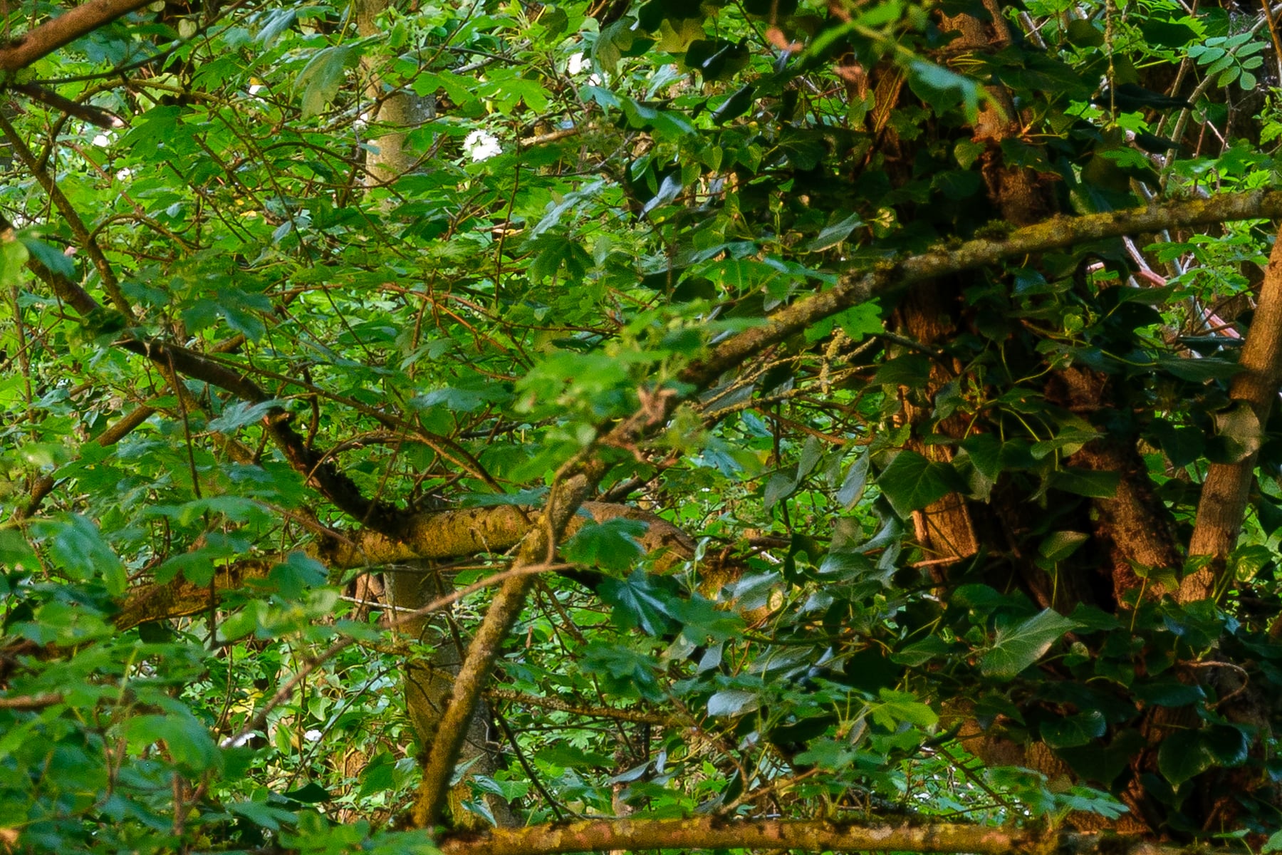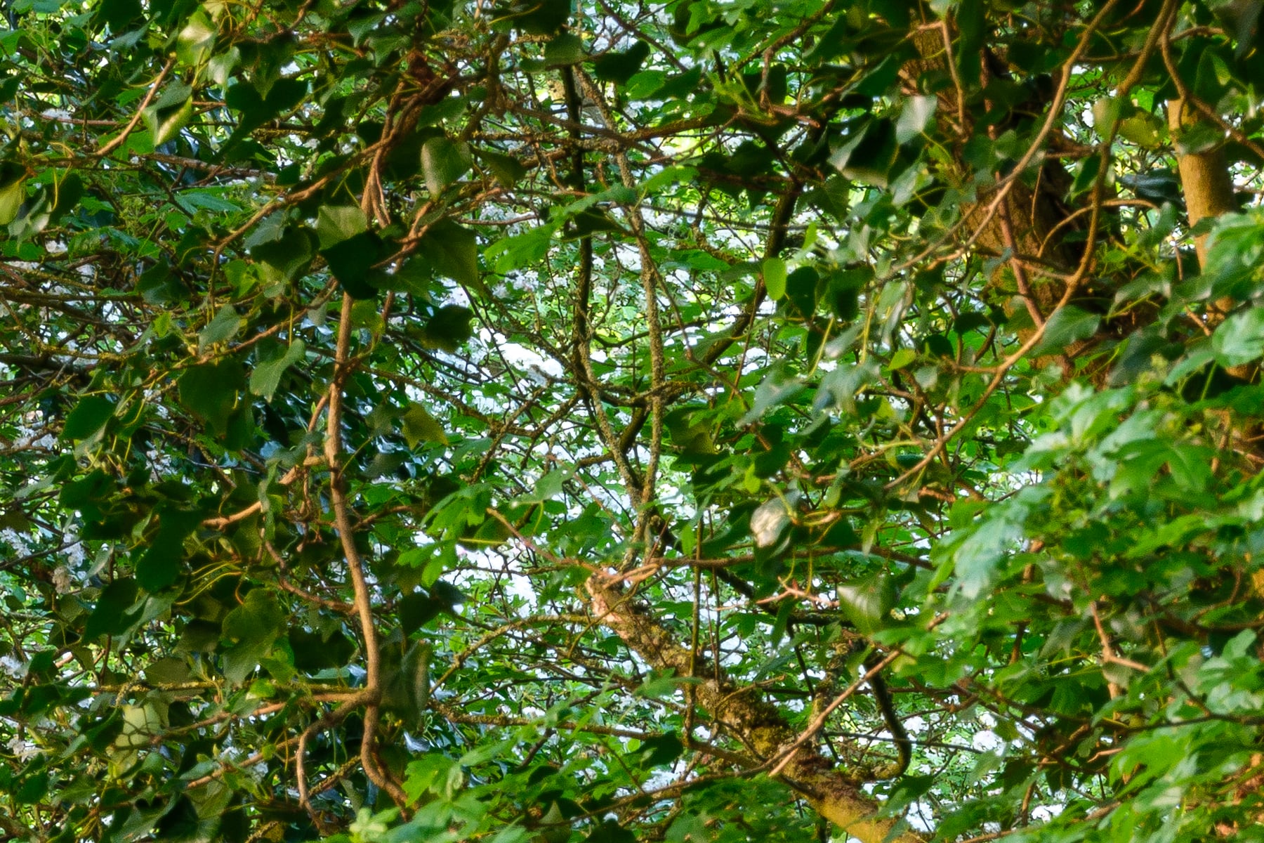 The narrow road, framed by overgrown vegetation, invites viewers to imagine a peaceful walk or drive through this enchanting woodland. The tall trees, some entwined with ivy, stand as silent guardians of this hidden gem in the English countryside. The composition leads the eye naturally along the winding path, evoking a sense of mystery and wonder about what lies beyond the bend.