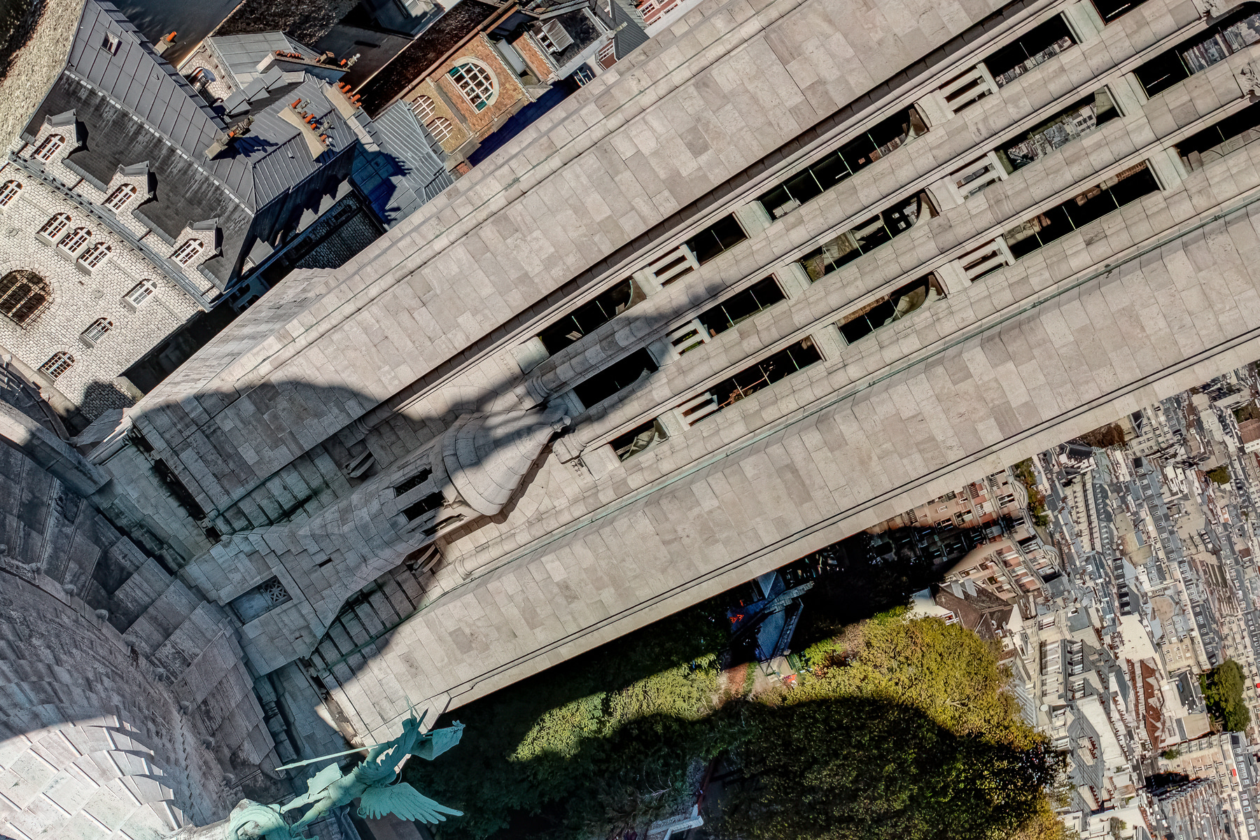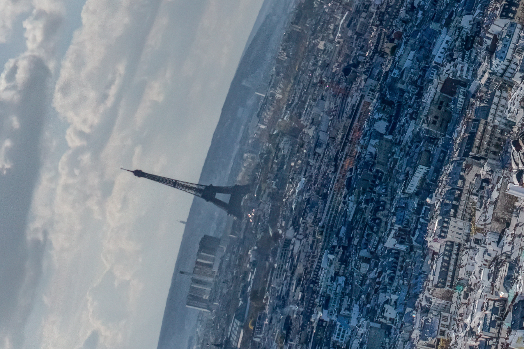 I love photos with all-encompassing views and this one is no exception. Due to the extreme width from the top-bottom and left-right of the frame, the three-dimensional photo forced into two-dimensions as seen gives a surreal warped perspective commonly known as a little planet. Due to the tight space and tripod restrictions, I shot this twelve-image composite photo hand-held. This high-resolution panoramic photo of the Paris skyline showcases Paris’ distinct architecture, along with the Eiffel Tower in the distance and two of the towers of Sacre Coeur.