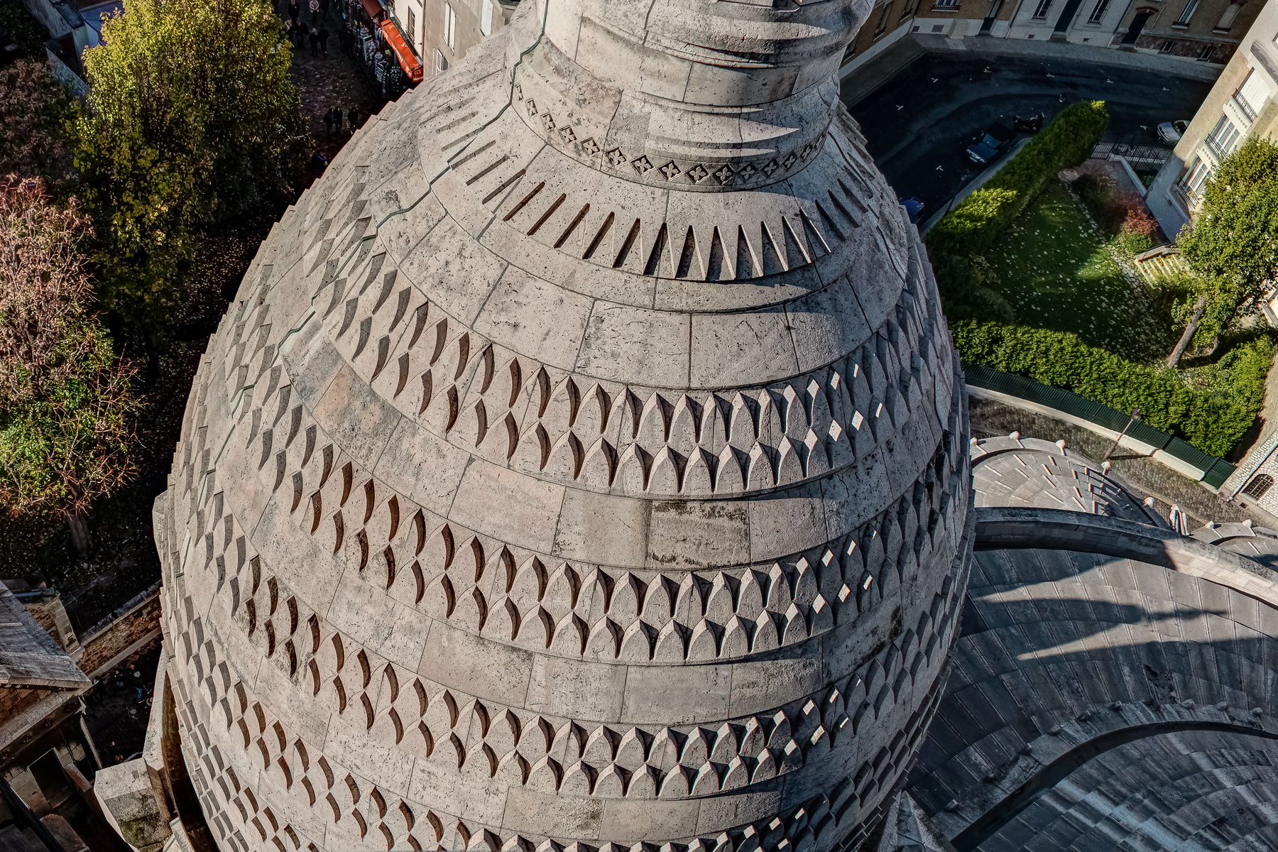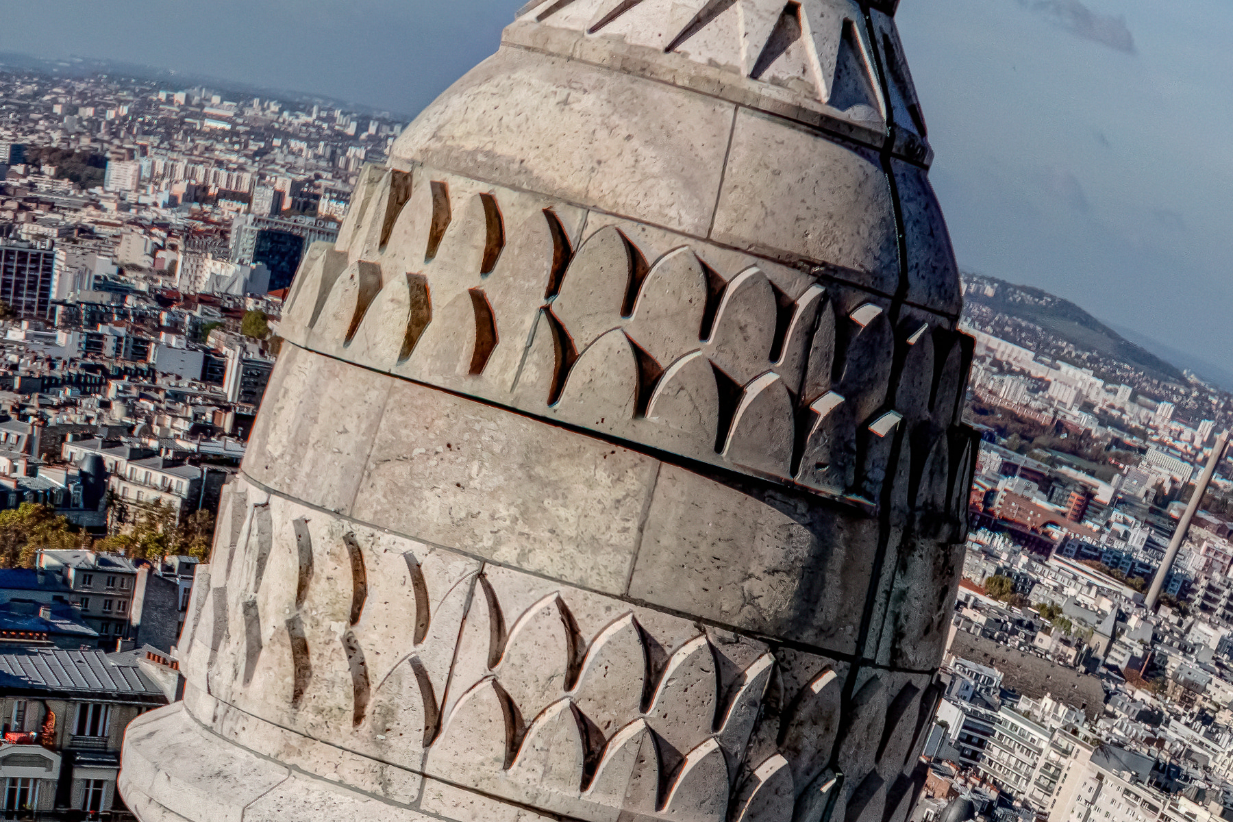 Its vantage point makes it easily seen from most iconic sites in the city; especially any of the tall monuments and historic sites of Paris, such as the Arc de Triomphe, Notre Dame, or the Eiffel Tower. It sits bright atop the horizon as seen in my VAST Photo of the Paris skyline from Place d’Italie. Upon arrival, one must climb up the many stairs to get to the church, a small pilgrimage in itself. This basilica is simply beautiful, and its architecture feels unique, yet harmonious with other famous churches in Europe. It was hard to put my camera down with so many fascinating features. My wife and I were greeted with incredible panoramic views of Paris as we made the dizzying climb to the top of the dome. As I began to take photos of the cityscape, I decided to include everything I could see into a single photo. The entirety of the whole scene and its cohesive elements is what struck me the most.
