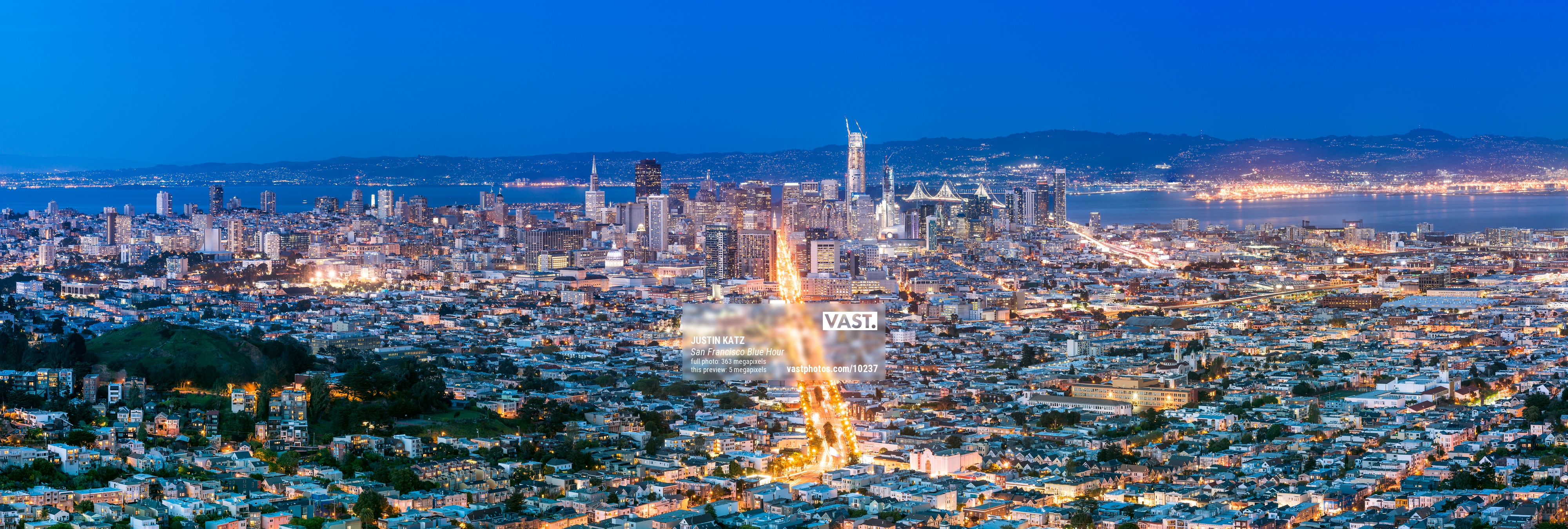 The “blue hour” is that brief but magical moment of twilight, either early in the dawn, or late in the dusk, when the sun is at a significant distance below the horizon and the residual, indirect sunlight takes on a predominantly blue hue. My goal was to create a VAST photo capturing San Francisco at that special moment - but first I had to find the perfect location.