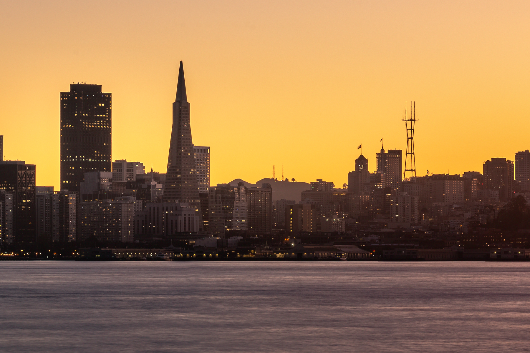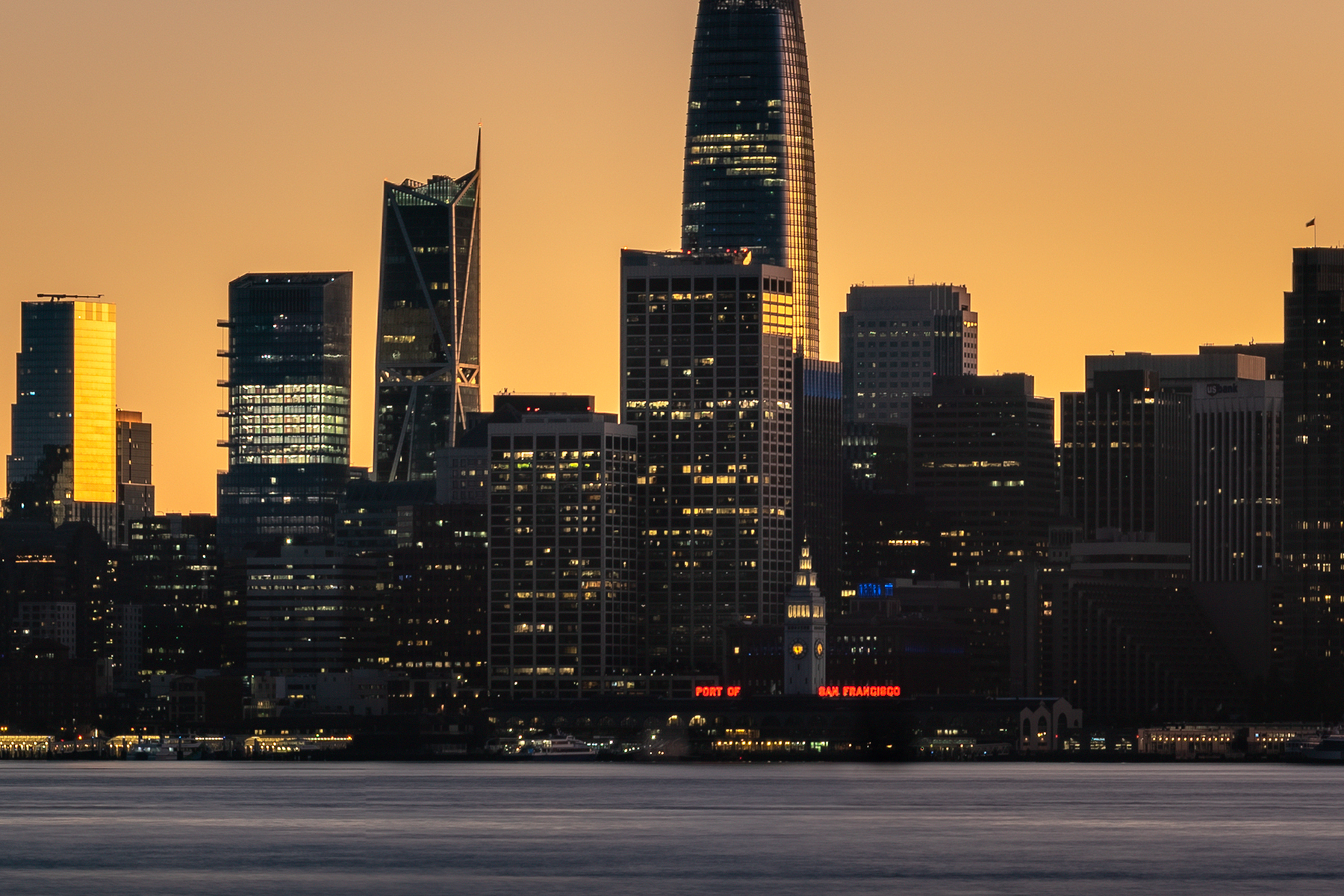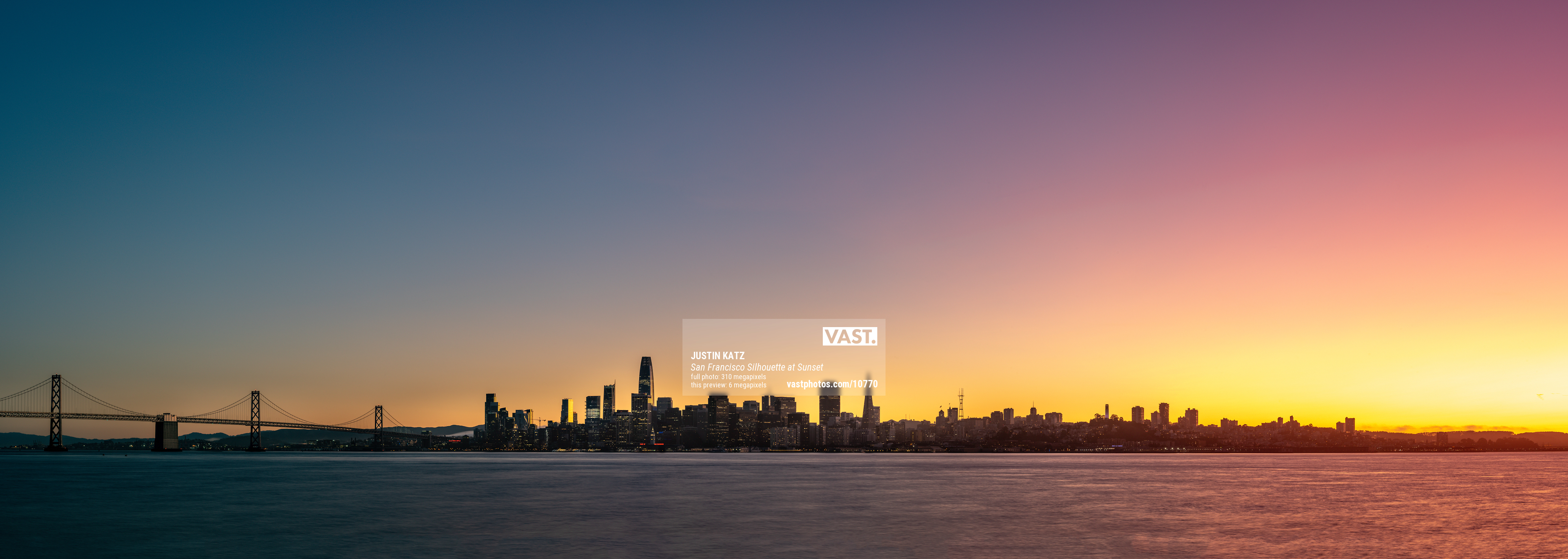 A close-up of "San Francisco Silhouette at Sunset" by Justin Katz: an ultra-high-resolution VAST photo.