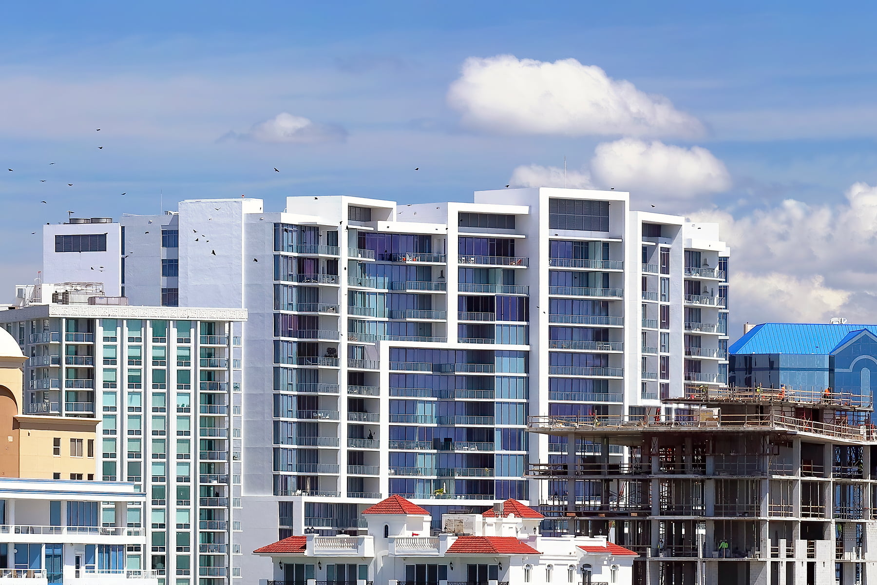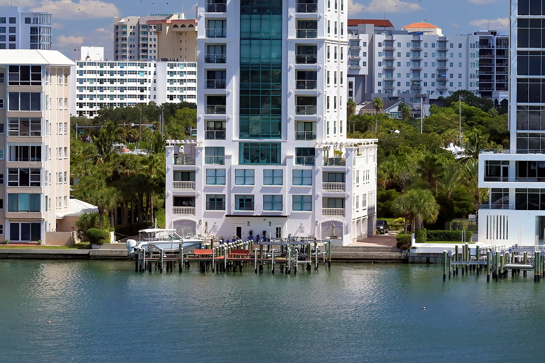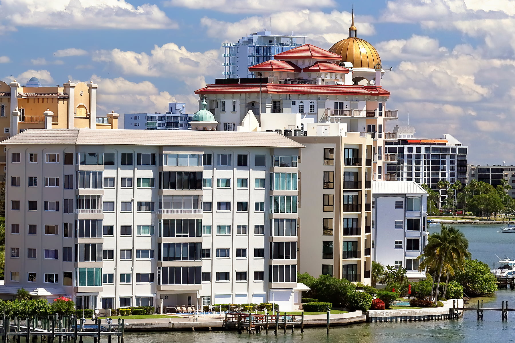 The Sarasota skyline by Sarasota Bay as seen from the John Ringling Bridge on a beautiful spring afternoon.