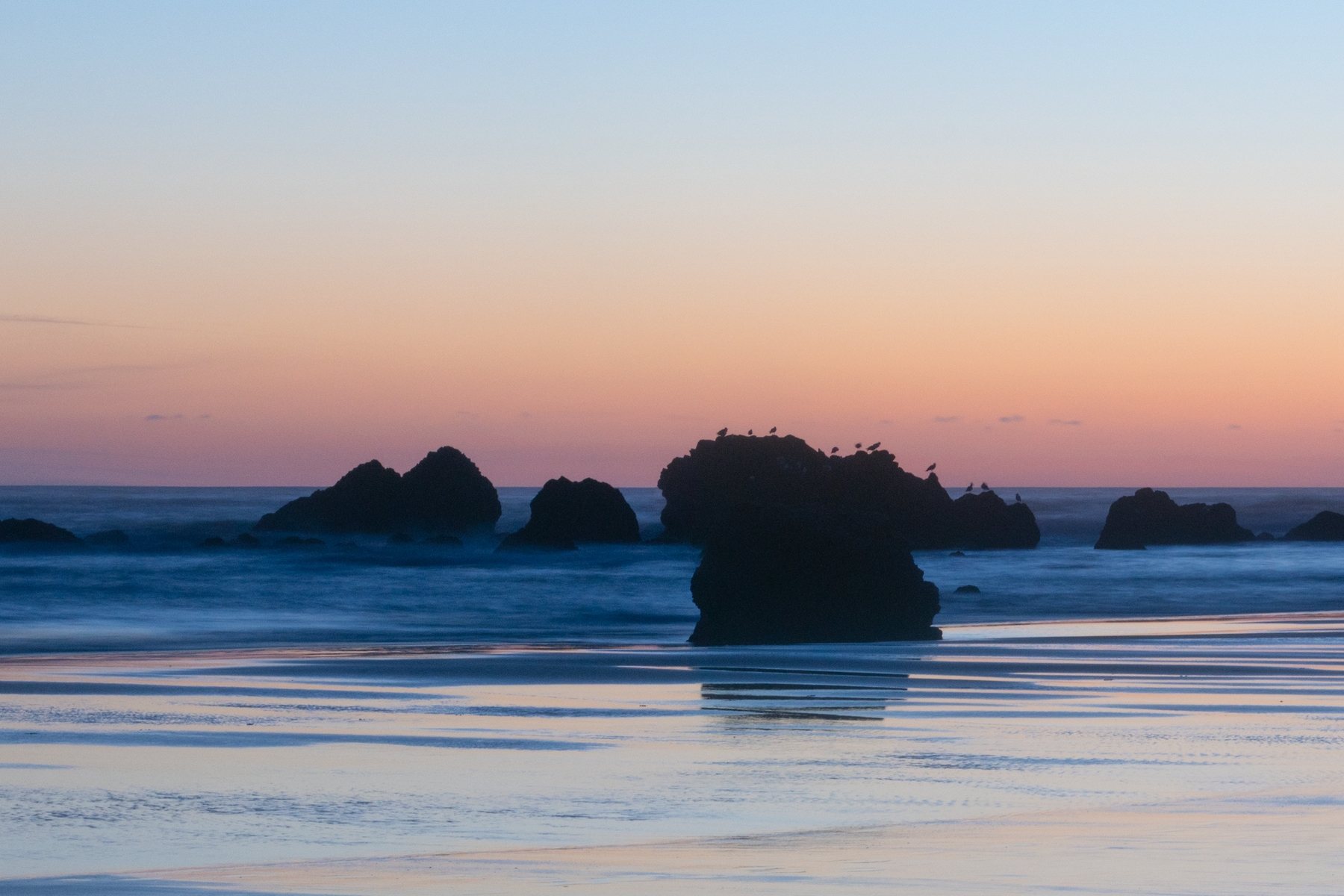 When I was making this image I didn't see the sea birds sitting on some of the off shore rocks, it wasn't until I was working on the image in post production that I noticed them. Take a moment and zoom in on the sea stacks and see them.