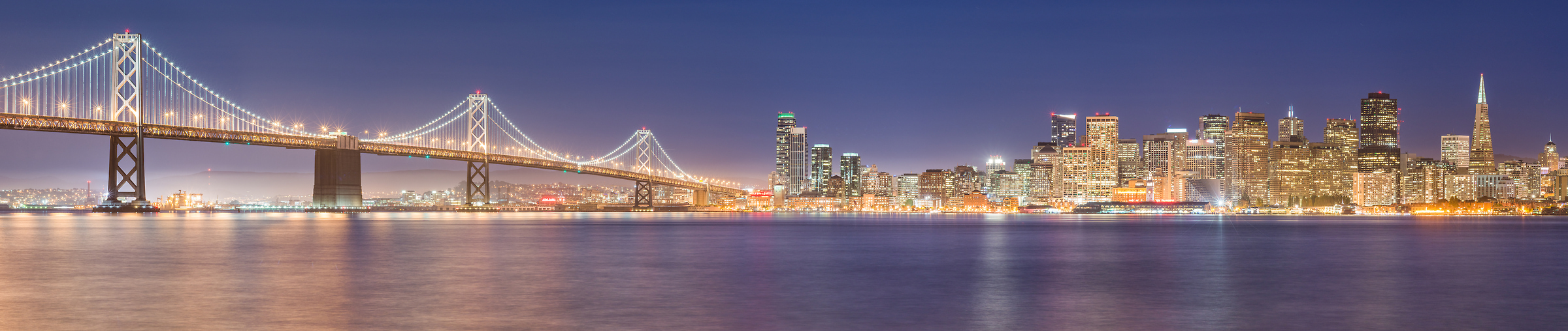 I traveled to the same spot about countless times over the course of a few months, trying to nail the optimal conditions for the shot that I had in mind. There was always something just slightly off that signaled to me that I would have to come back and try again: either the sky was too overcast, the weather was too windy even for my secure tripod, or the stadium lights from a Giants baseball game would overpower the scene. On the final attempt however, I found myself perched on the large rocks against the water, watching the sky turn into that perfect post-sunset glow that I was looking for. The lights on the bridge and the city itself began to turn on, and I was ready to begin capturing the 13 individual exposures that I would later stitch together to create this high definition panorama of the San Francisco skyline.