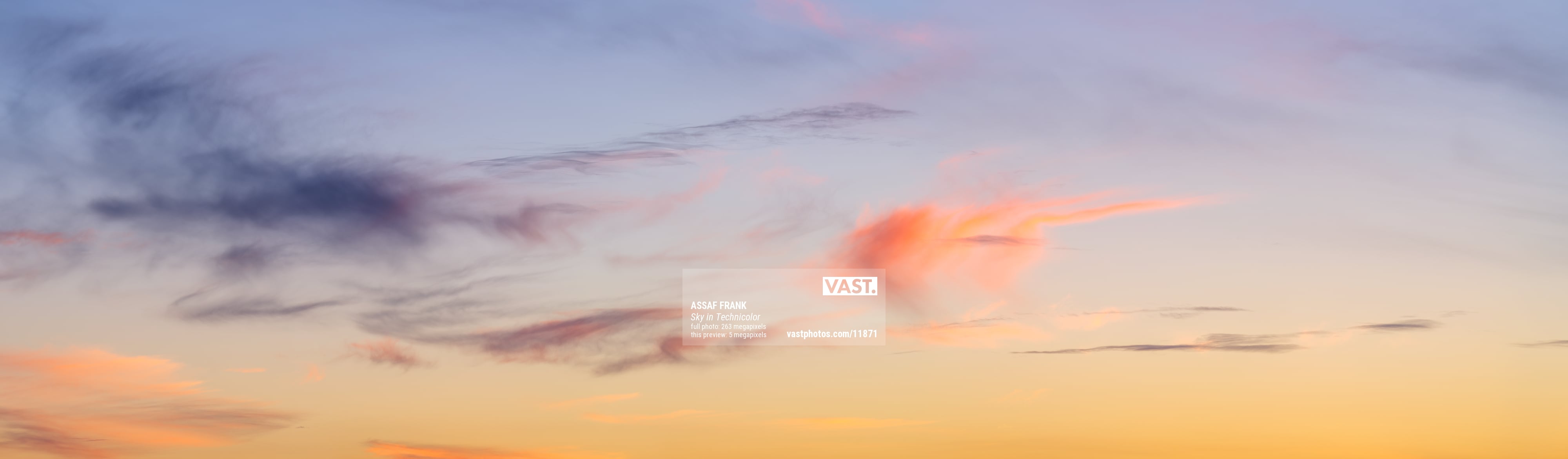 263 megapixels! A very high resolution, large-format VAST photo print of a beautiful sunset sky with colorful clouds; panorama photograph created by Assaf Frank.