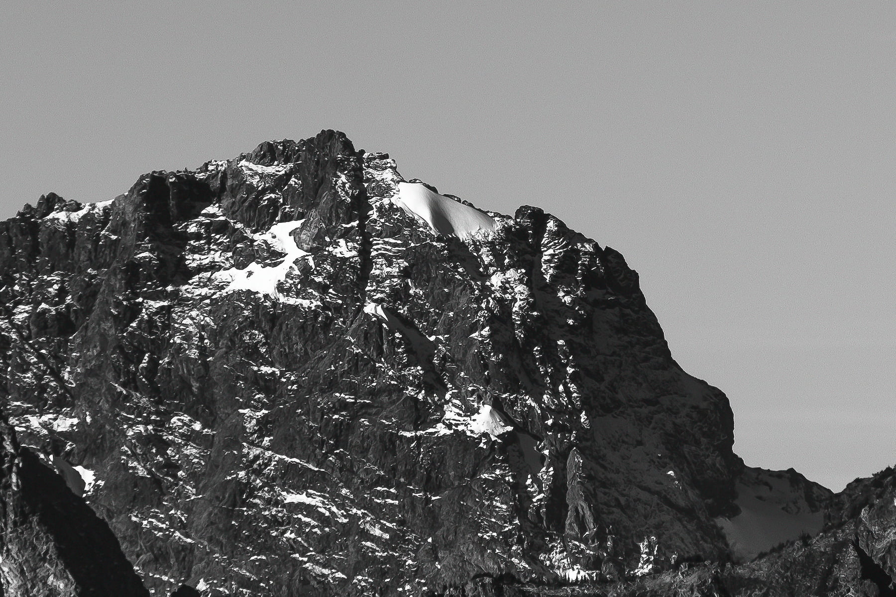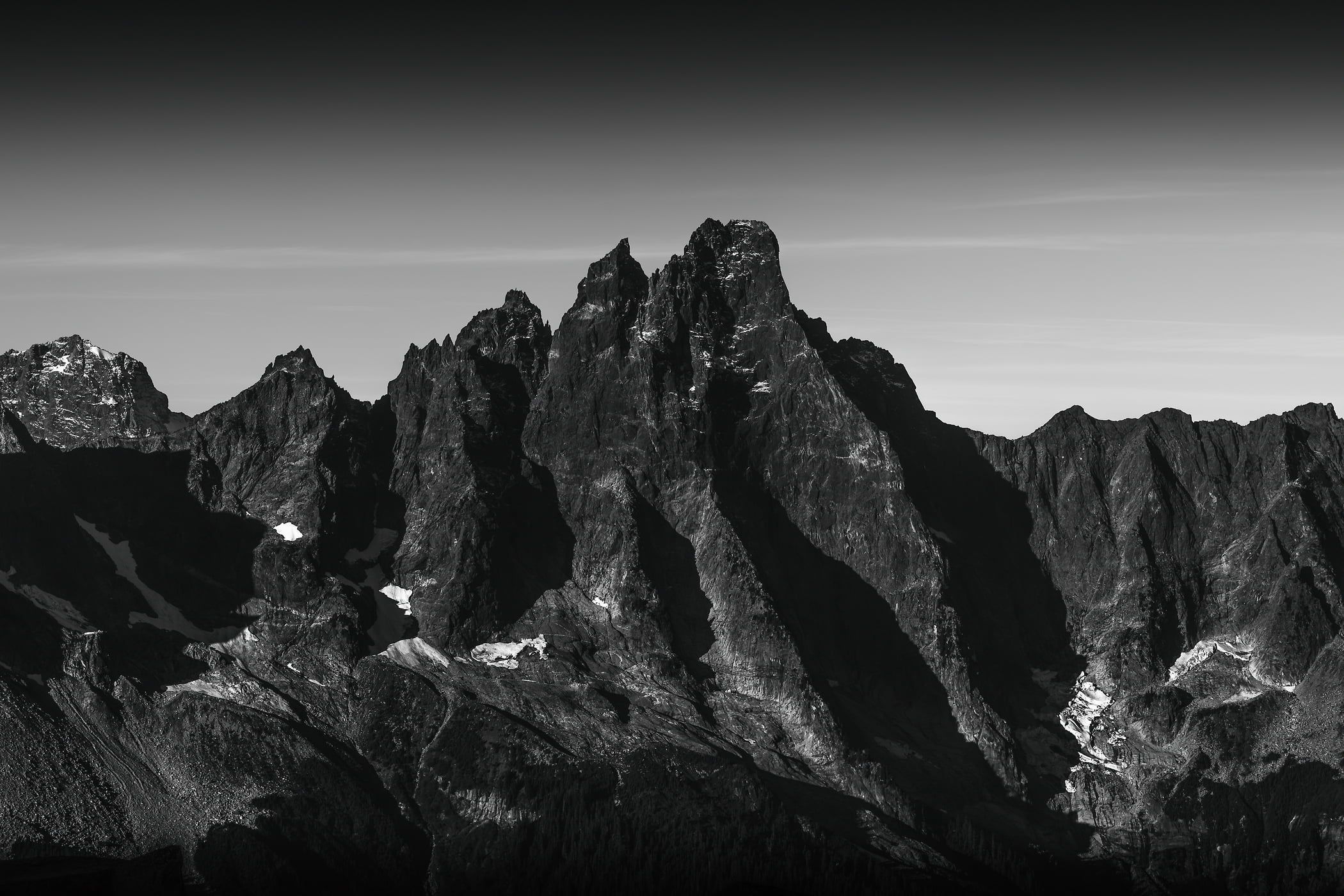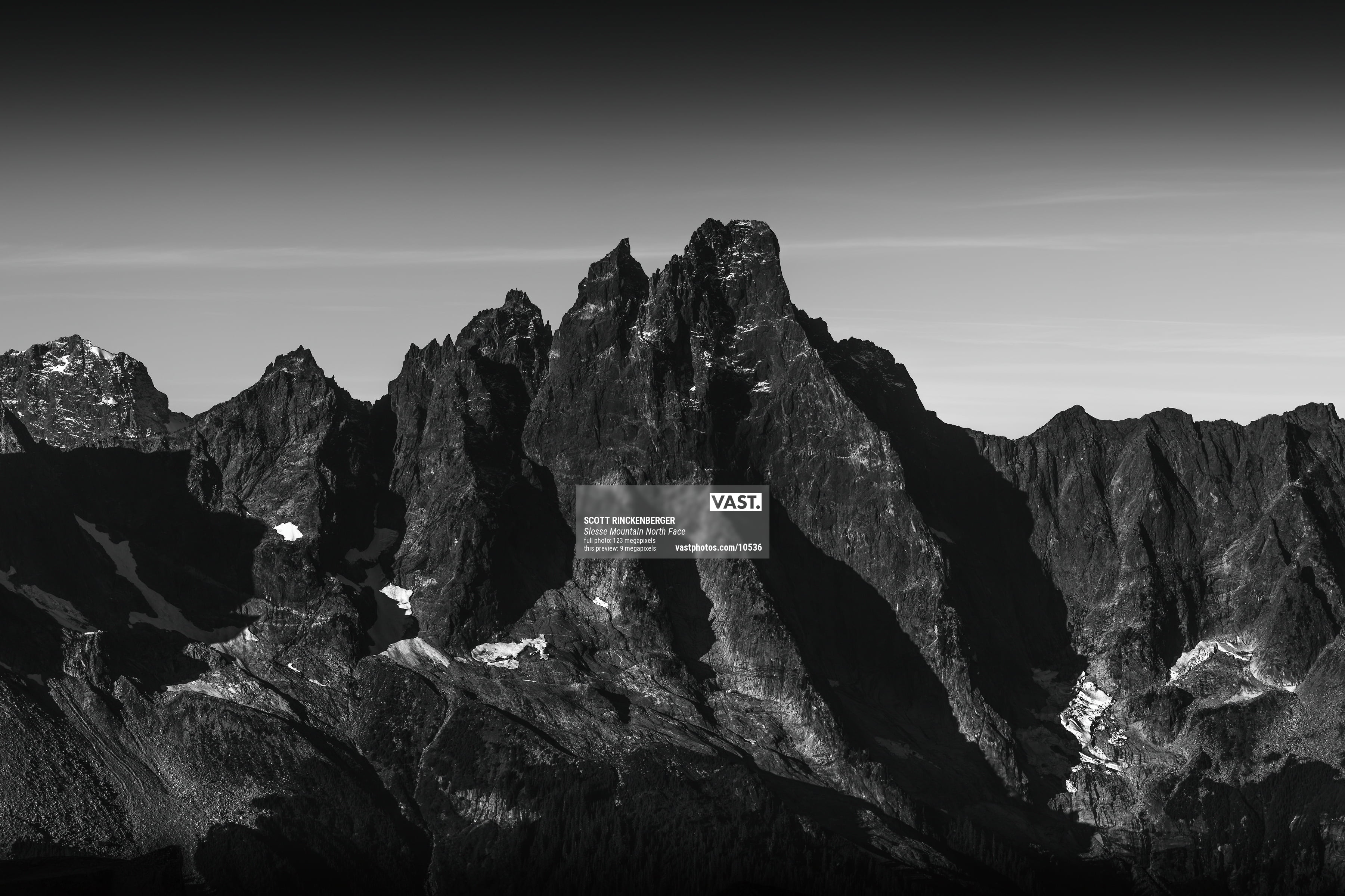 The site of a tragic airplane crash, and the home of one of the iconic 50 classic climbs of North America, Slesse Mountain is a peak of rich history and superlative scale. Just north of the U.S. - Canada border, Slesse is among the great peaks of the northernmost part of the Cascade Mountain range, a range too large and wild to be contained in a single country. The long, highlighted ridge rising from the lower-right part of the image is the classic NE Ridge which provides the motivated alpine climber with over 2,500 feet of sustained technical climbing and is truly one of the great trophies of the Pacific Northwest.