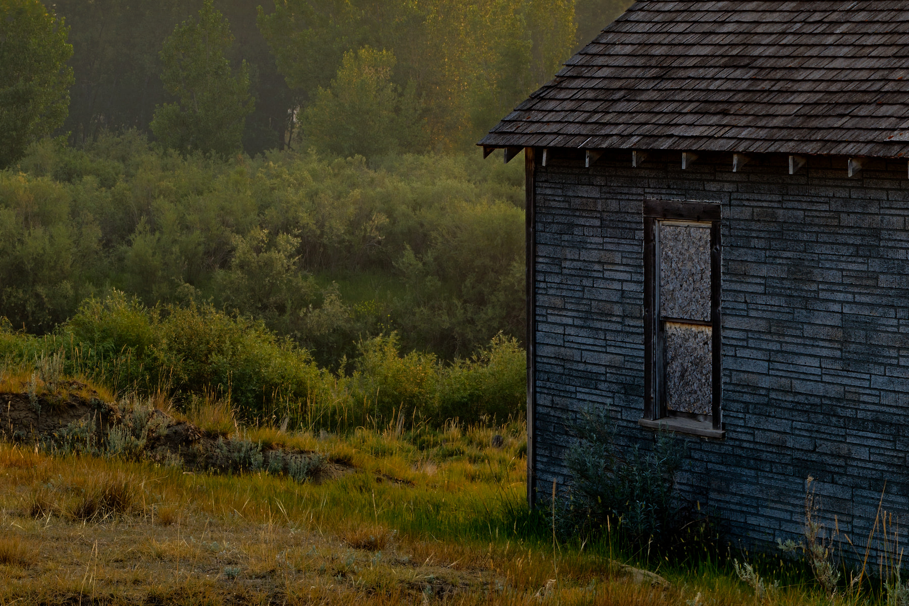 Once the sun was above the horizon, it started to illuminate all the heavy smoke that lingered above the river, creating a wonderful glow. This allowed me to capture a special, once-in-a-lifetime image of radiant splendor surrounding this old property and its accompanying outhouse. Unfortunately, the one photo I forgot to take over those few days was a self-portrait of me working behind the camera while wearing a respirator!