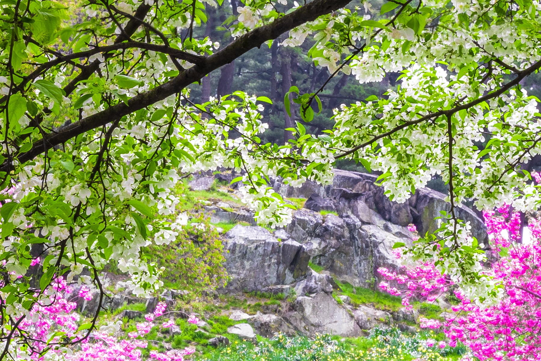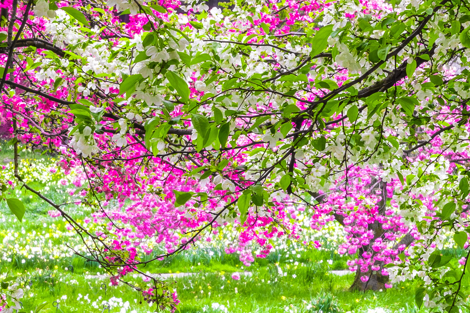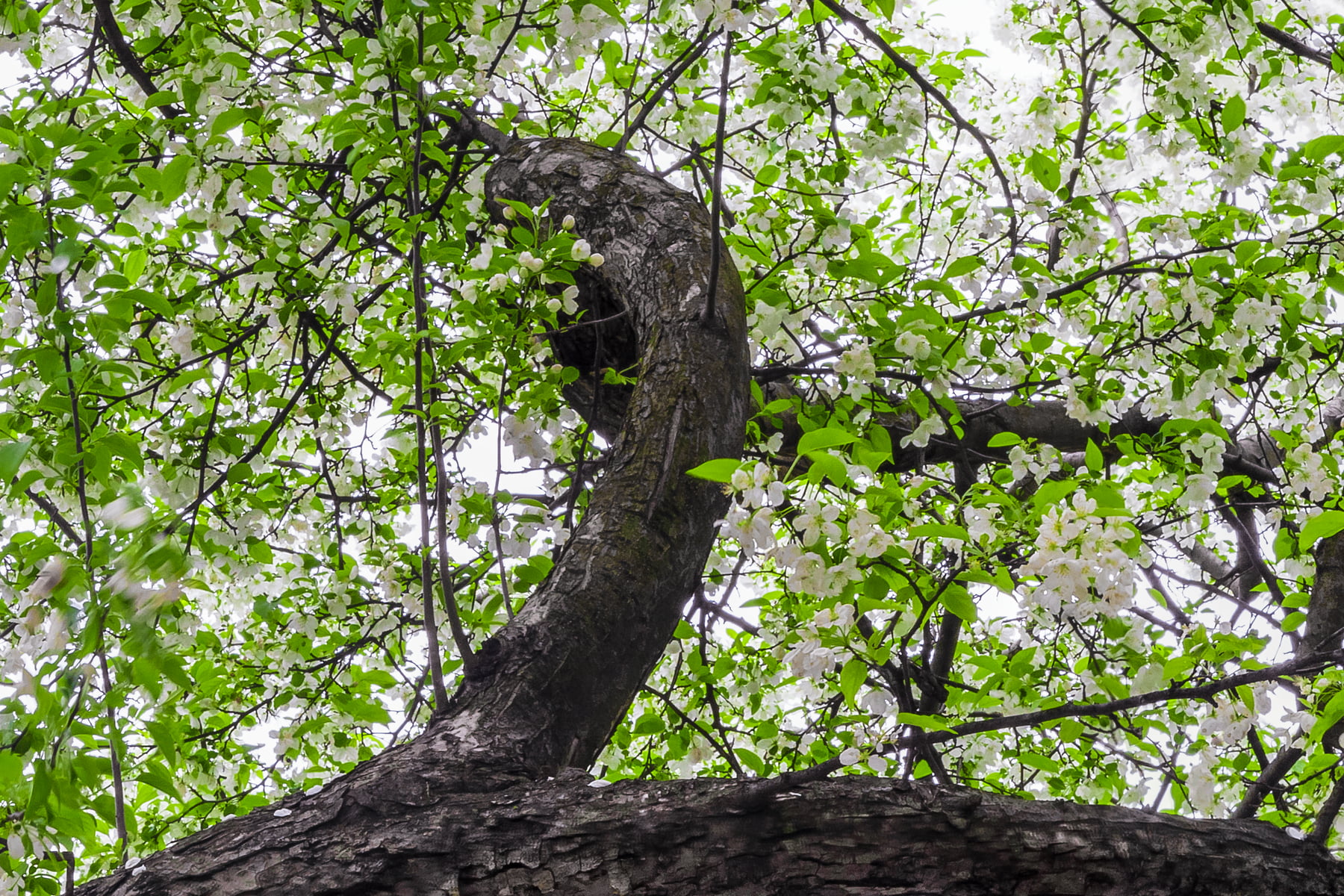 A perfect specimen of one of these Snowdrift trees can be found anchoring the Crabapple Collection in the New York Botanical Garden. My goal was to photograph this particular tree at the peak of its splendor, from directly underneath its idyllic canopy. So, on a pleasantly warm April day, I headed to the garden with the equipment for creating a VAST photo in tow.