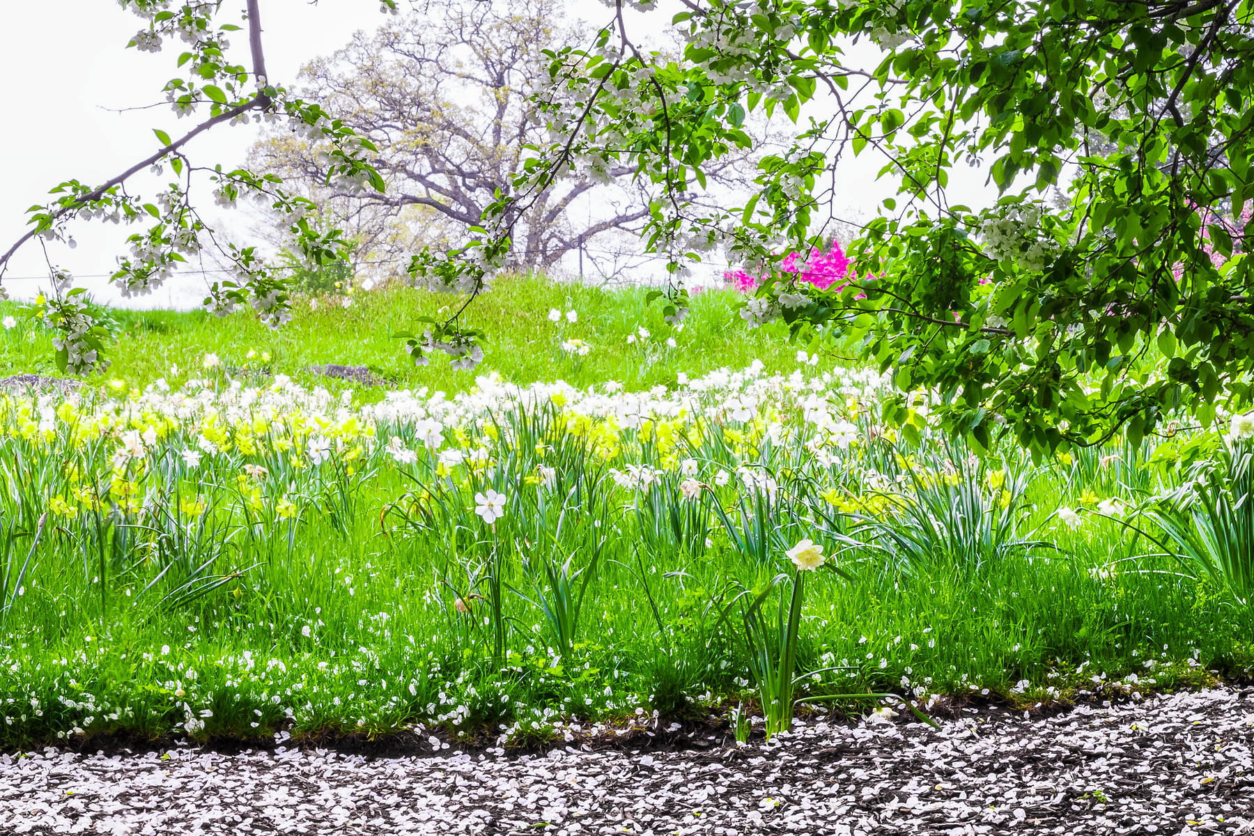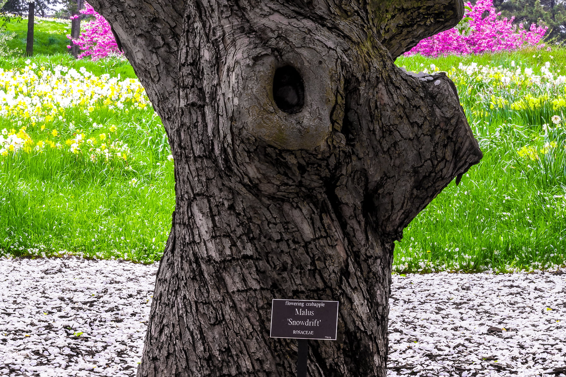 Every spring, the "Snowdrift" species of Crabapple tree puts on a magical show, blooming with a canopy of brilliant white petals. Shortly thereafter, the namesake of the tree becomes readily apparent as flurries of the radiant blossoms gracefully float to the ground surrounding the tree.