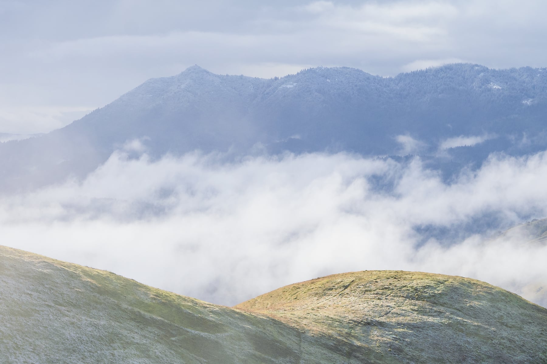 To add to the magic of the mood and to draw attention to Mt. Tam and the hills in the background, I intentionally let the foreground grass take on a beautiful soft effect.
