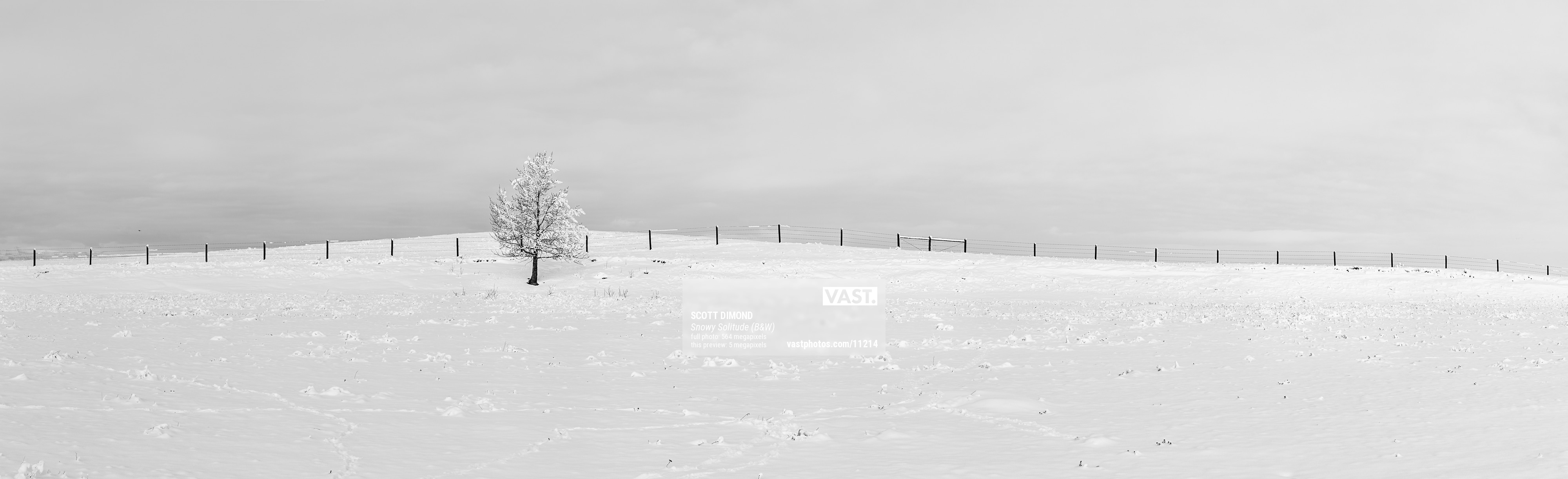 Then early in March of 2022, the perfect storm arrived. A nice snowfall of the moist sticky kind. Just enough to cover everything and stay in place but still make the roads easily drivable. As soon as I realized what had fallen overnight, I was out the door. There was no guarantee that the snow that had fallen at my home had also fallen at the lonely tree, about an hour’s drive away, but I had to give it a try. Upon arrival, I was pleased to see that the same snow had fallen at the location and was still sitting on the tree’s branches. In some places, the snow even sat on the thin barbed wire. Perfect! I got to work on capturing the scene as an ultra-high-resolution VAST image. I worked as quickly as I could, as I knew the snow would not remain in place for long. In the end, I was able to get all the shots I needed, and once assembled, the resultant image was just as I had imagined. Mission accomplished!