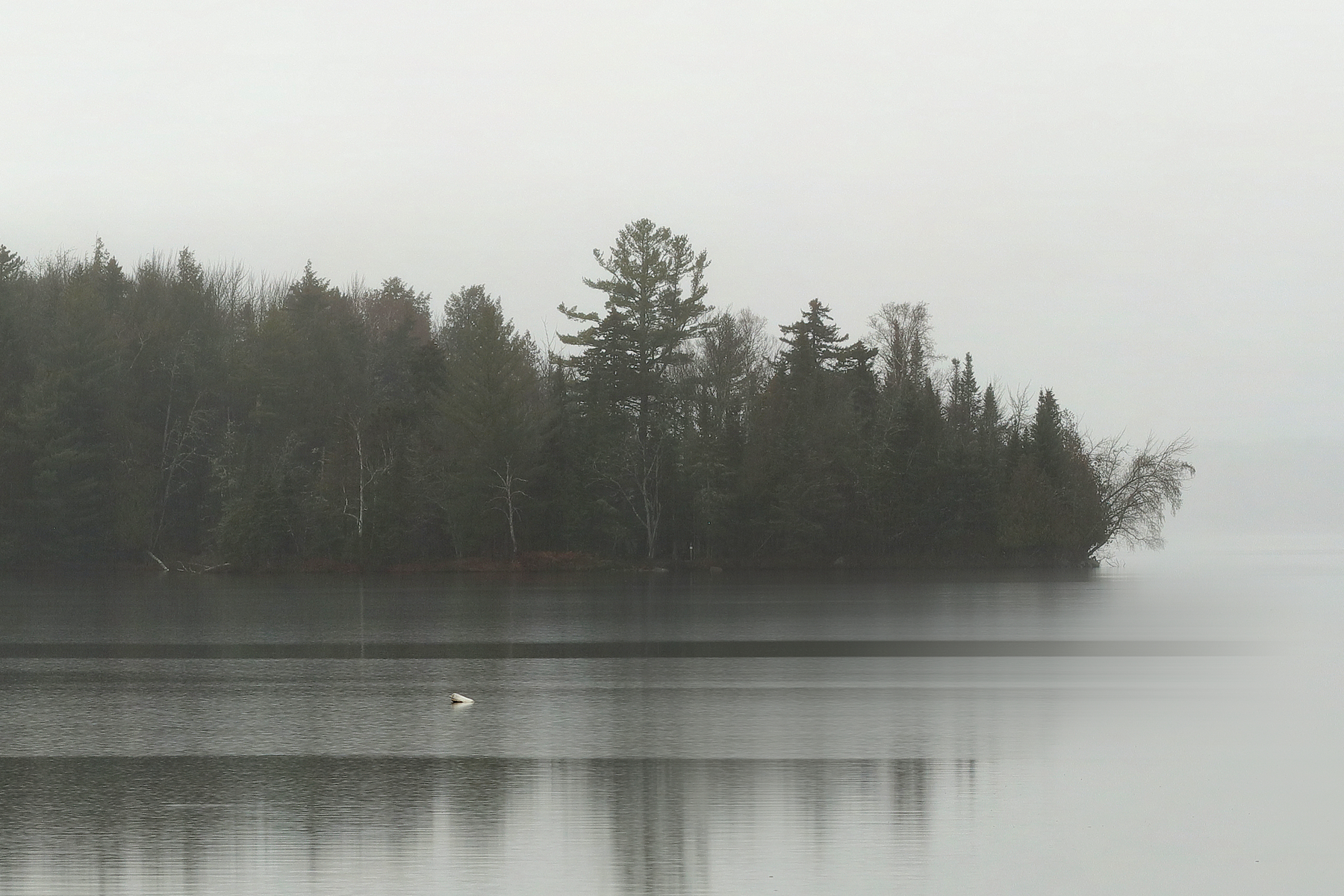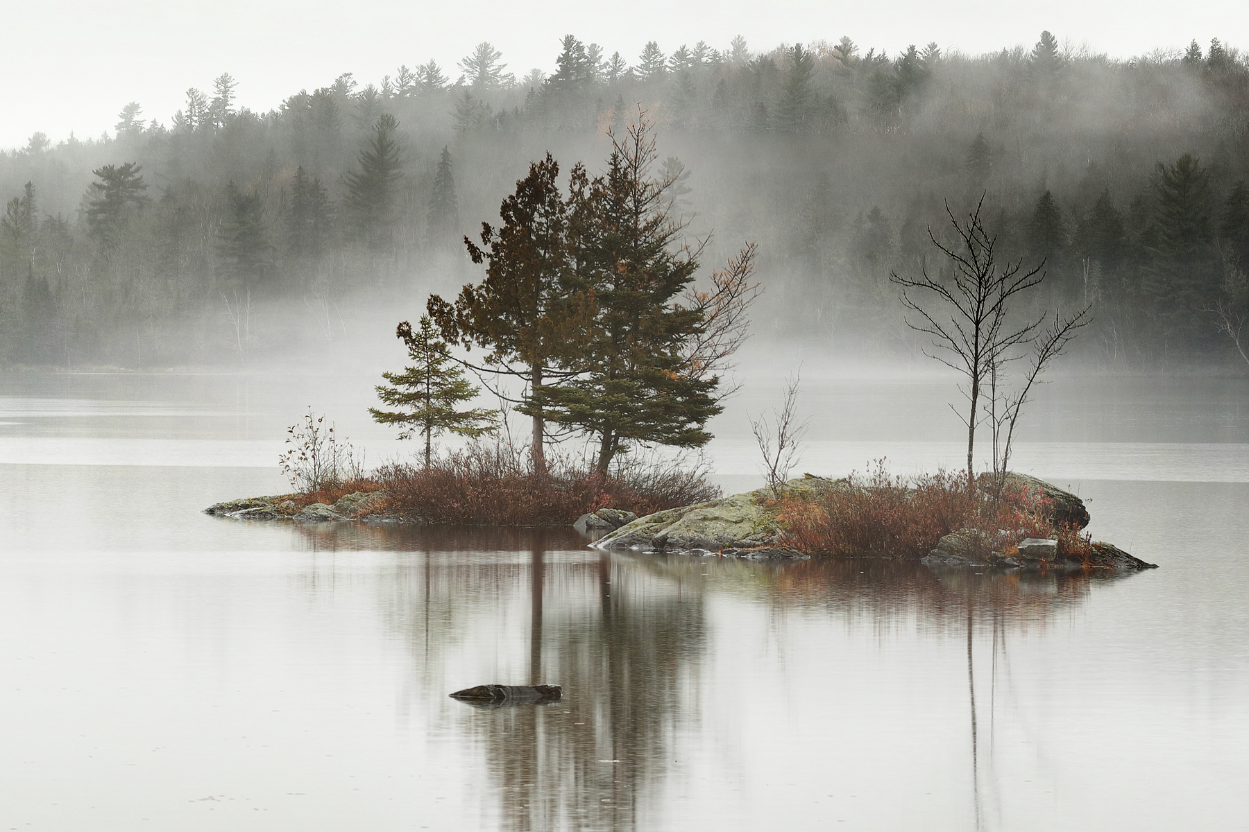 The drive from Portland, Maine to Montreal was not what I expected it to be at all. It starts by going through small towns, single track roads and sometimes right in the back and beyond. Things start to get interesting as you enter the White Mountain National Forest area where there are many state parks and stunning scenery to take in. On this particular journey, the weather was bleak with occasional rain, however, I always had an eye open for a possible photo opportunity. Just as a small break in the rain happened, I caught sight of this lone tree out on this incredibly still and serene lake. The entire scene was completely calming with a peaceful feeling of solitude. The clouds were low, creating an eerie mist in the background trees. I pulled over and quickly set up my gear knowing that heavy rain could come anytime soon. I managed to get set up and get most of the way through the shot before the rain came at which point I finished the shot under the umbrella.