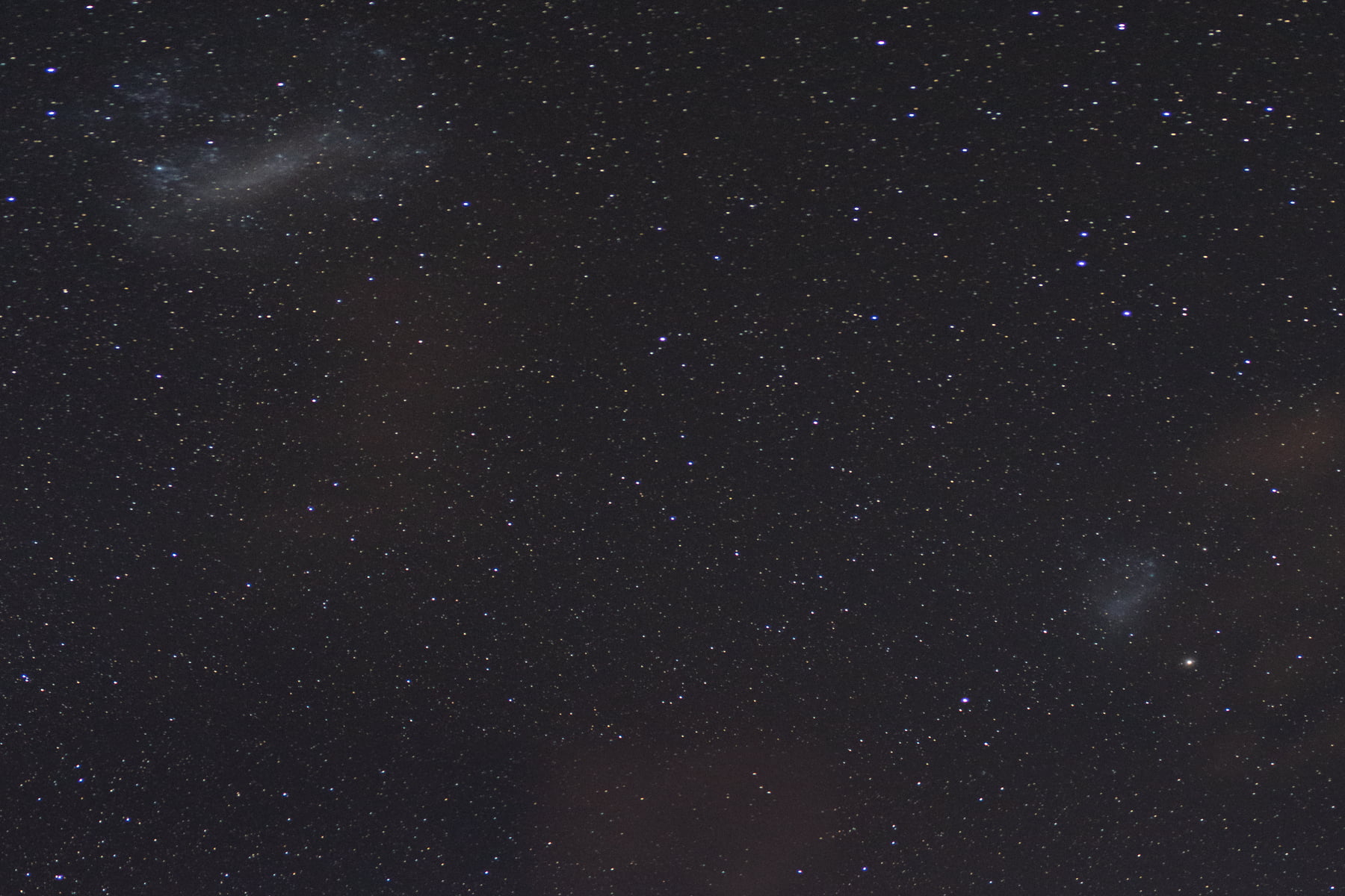 Visible directly above the church is the Southern Cross. The two cloud-like patches of light in upper right are the neighboring galaxies known as the Large Magellanic Cloud and the Small Magellanic Cloud and are only visible in the Southern Hemisphere skies. They are about 170,000 light years away and the Large Magellanic Cloud contains about 10,000 million stars. These are the closest galaxies to our own and are a stunning sight whether viewed with the naked eye, binoculars or a telescope. They are considered to be satellite galaxies linked by gravity to the Milky Way.