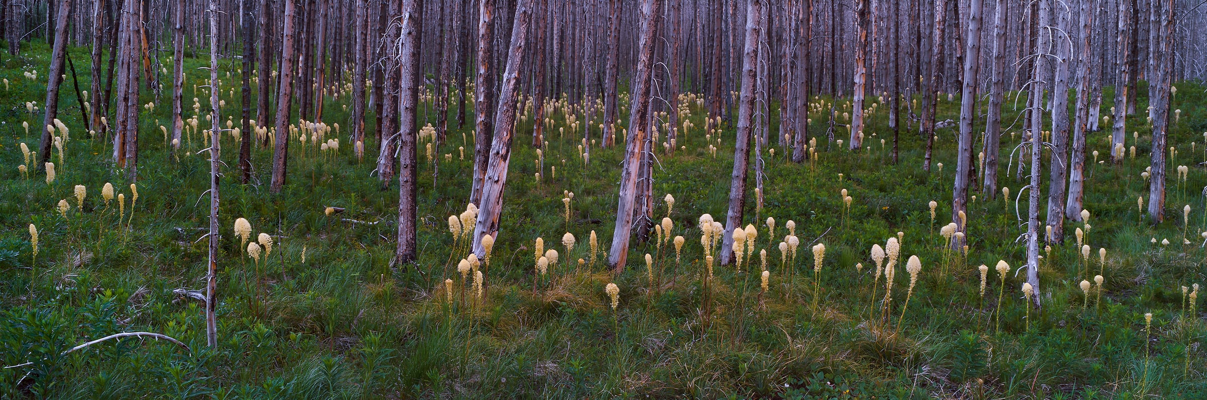 The blacked burnt bark on most of the trees in the park has fallen off, leaving white sentinels as far as the eye can see. But there are sure signs of the forest’s slow recovery. The undergrow is springing to life and the wildflowers are blooming.