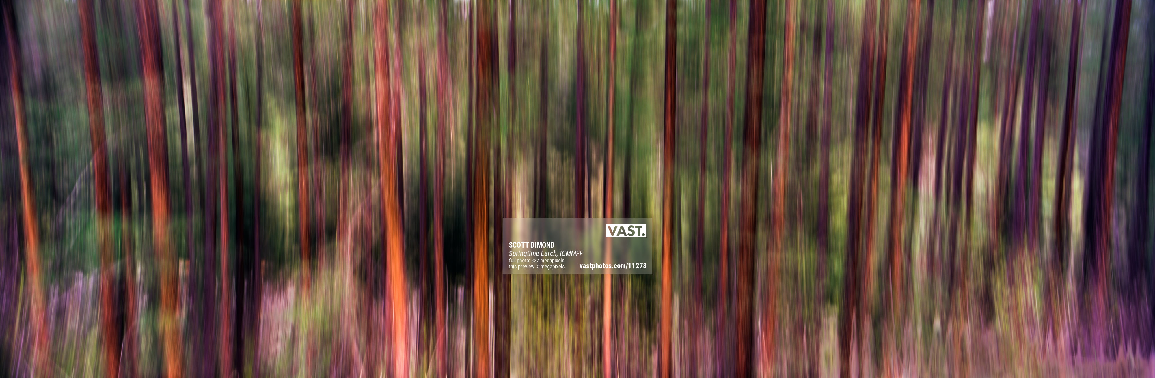 With the advent of digital cameras, the ability to create ICM photographs was simplified by being able to take a photo and review it immediately in camera. The camera movement necessary to create the desired ICM effect can be achieved by experimenting and taking 10, 20, or more photos until what was seen on the camera back is satisfactory. But how could an ultra-high-resolution panoramic ICM image be created? In the digital world, panoramic images and other ultra-high-resolution photos are created by combining 10, 100, or even 1000s of photos using stitching software. As the camera is moved to fixed positions across the scene, each digital photo that is taken requires overlapping content. The camera and the subject in each photo must remain perfectly still so that the stitching software can identify which photos are to be combined by finding the identical content within the overlapping photos. This is the approach taken to produce most of the ultra-high-resolution photos available from VAST.