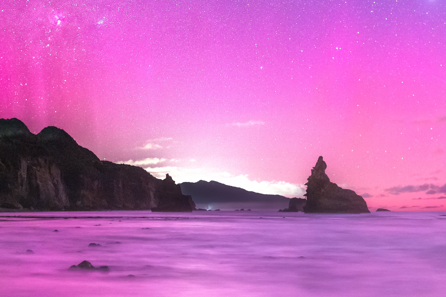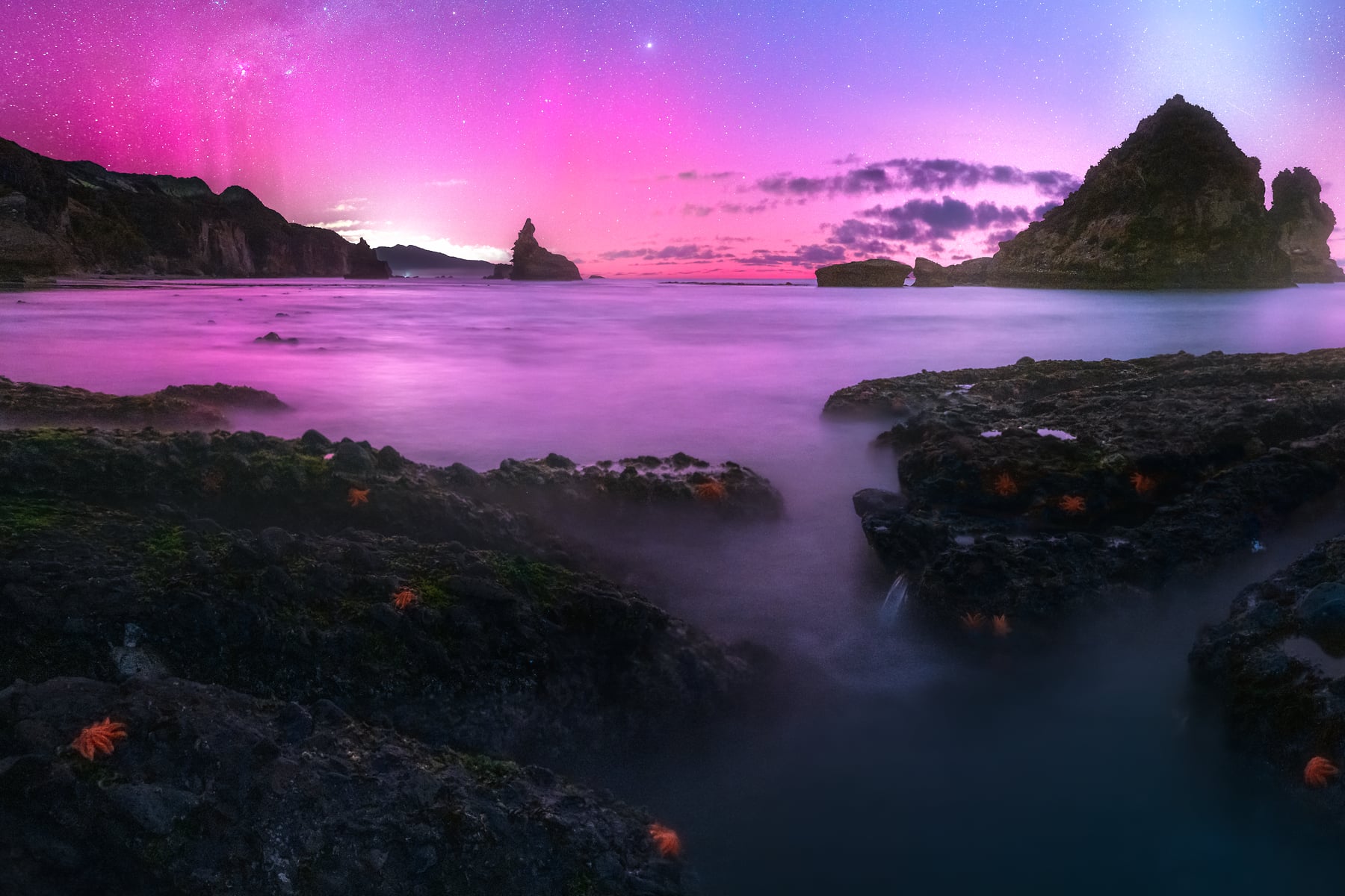 The alignment of the moon, Milky Way's position, tide, and weather meant this shot is feasible only a few nights of the year, if at all. To witness the aurora on top of that was truly spectacular.
