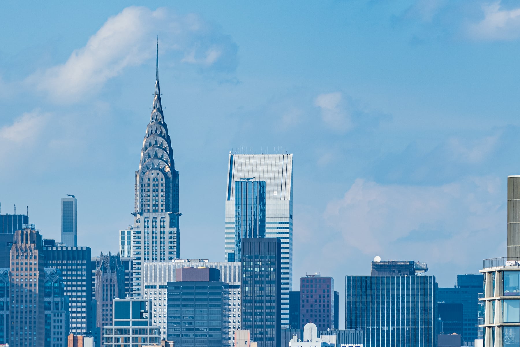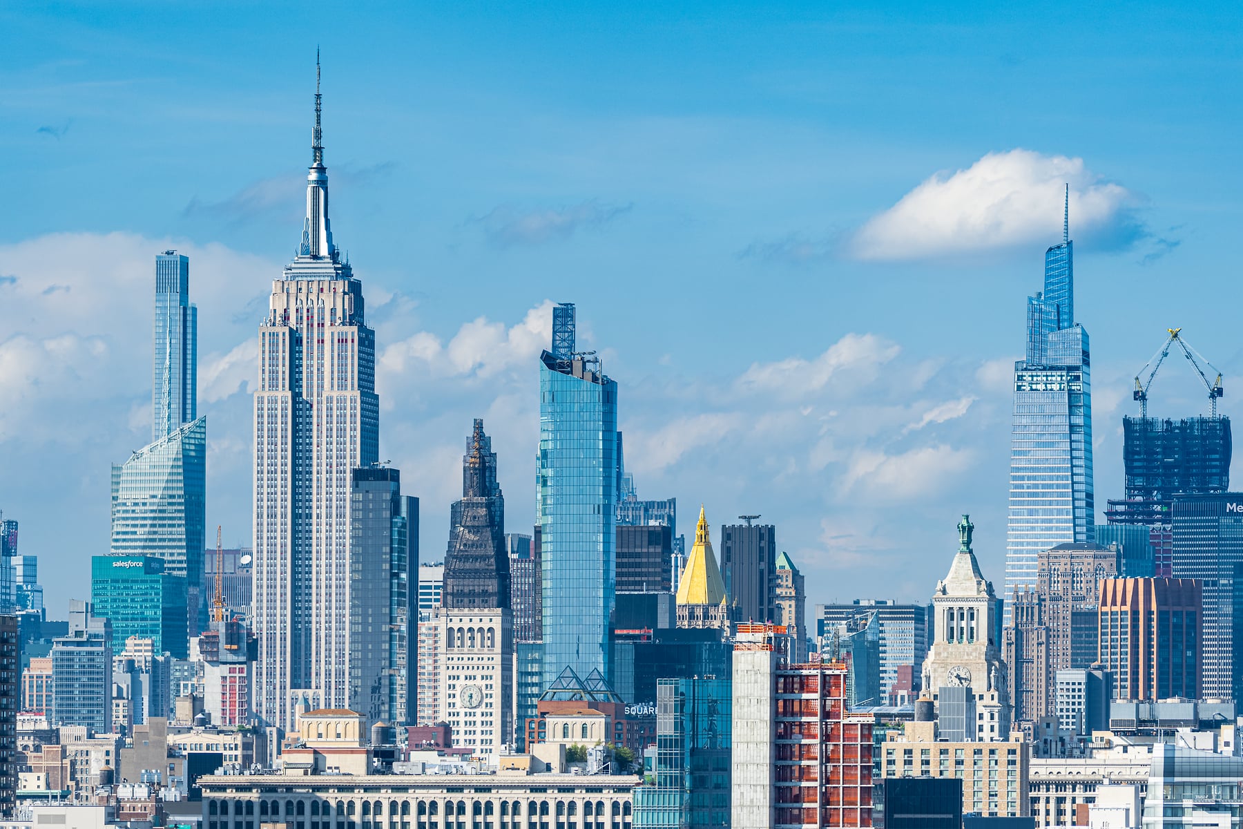 The unmistakable building in this photo of the New York City skyline is the Empire State Building itself. Nearly 100 years old, the behemoth still stands taller than most buildings in Manhattan. At over 1200 feet tall, it permits us mere humans a birds-eye view of the world below. A chance to glimpse a moment in time of the ever-changing city and its occupants.