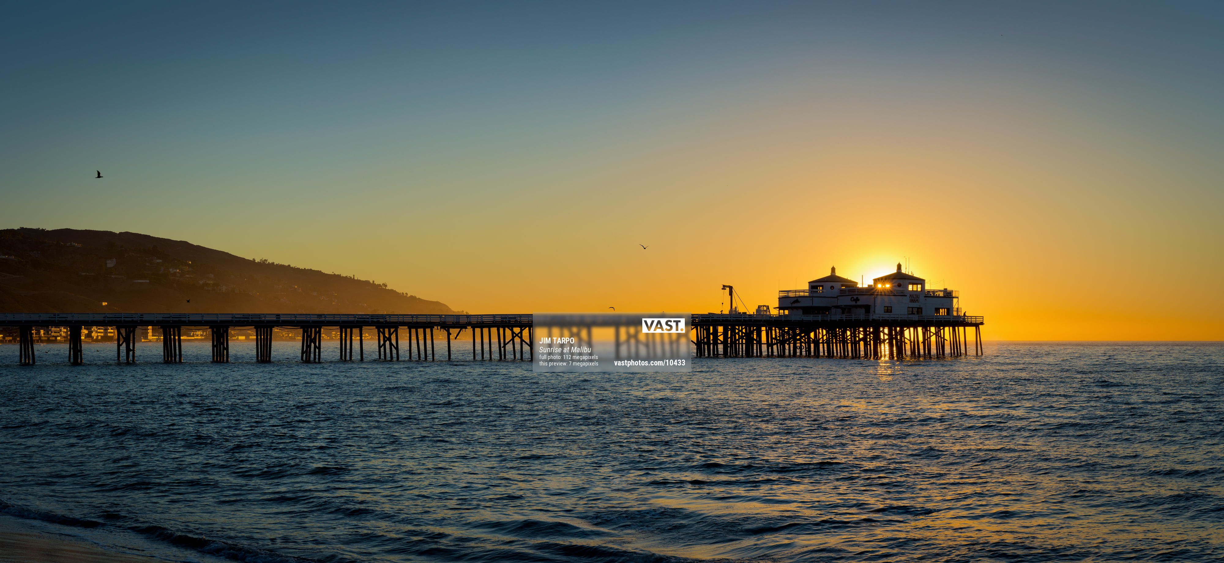 The Malibu Pier is a favorite destination of mine because it is on the way to many of the places that I photograph which are north of my home in Southern California. If you know anything about our traffic here, you know that anyone who wants to get through Los Angeles heading north had better get a real early start. With my usual start at around 5:00 a.m. I easily got to the Pier in time to set and capture this beautifully serene sunrise.