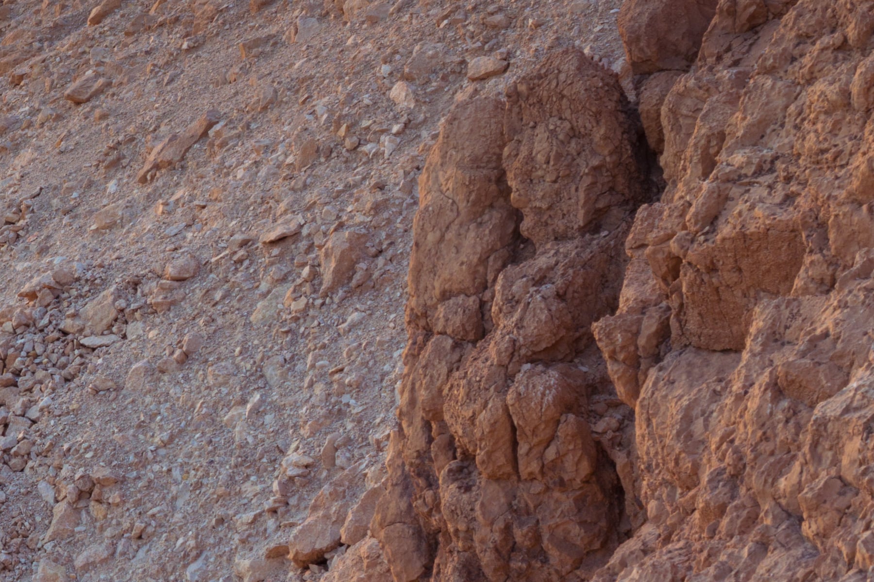 The vast expanse of the desert stretches towards the horizon, where it meets the calm waters of the Dead Sea. The gentle gradient of the sky, transitioning from deep blue to fiery orange, enhances the serene and majestic atmosphere of the scene. This image encapsulates the timeless beauty and stark wilderness of the Negev Desert, offering a moment of quiet reflection and awe.