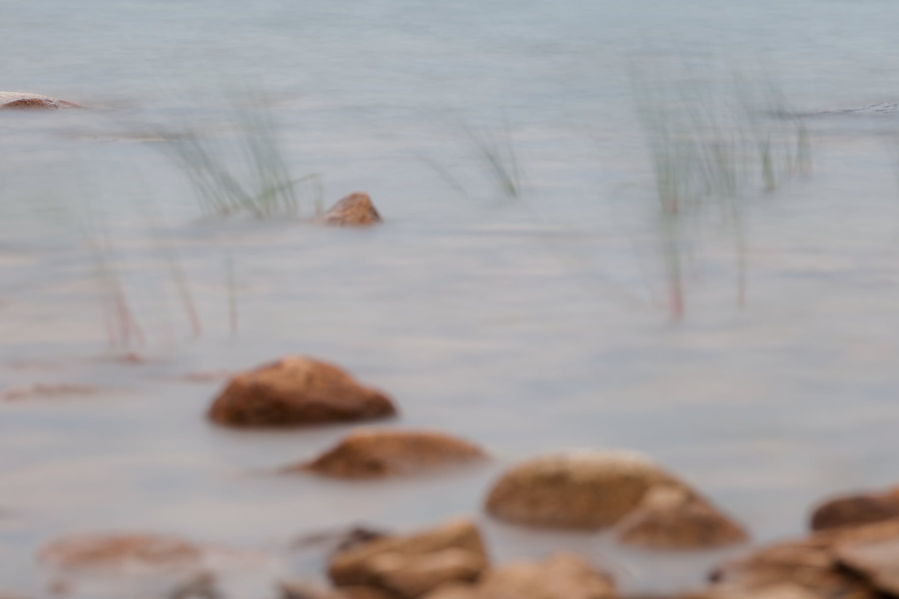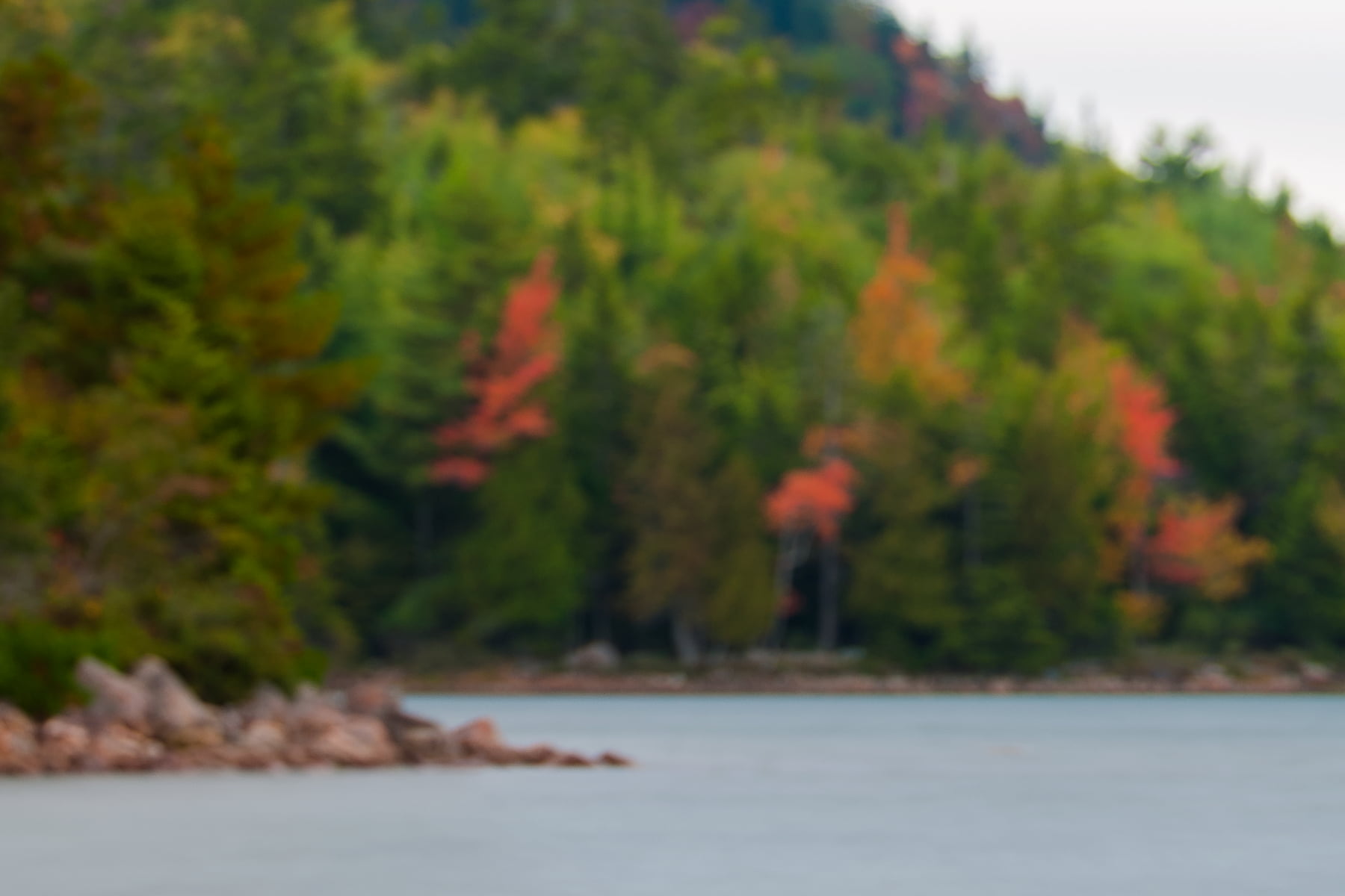 This is a "bokehrama" VAST photo of The Bubbles over Jordan Pond in Acadia National Park, Maine, on October 1, 2014, 11:02 AM. I used a 10-stop neutral density filter to allow for a long exposure because it was very windy with a lot of waves. I selectively focused on the rocks in the pond and let the foreground and colors in the background blur out of focus for a shallow depth of field to give the scene more of a three dimensional appearance.