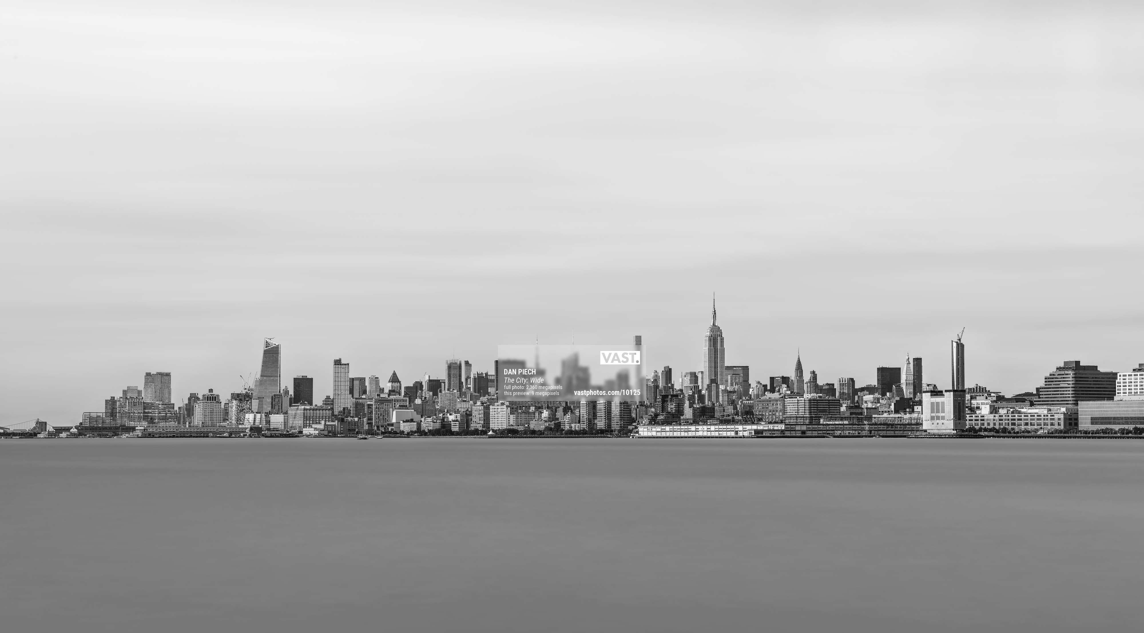 First, I used the VAST photo technique to create one of the highest resolution photos ever crafted of the skyline, at 2,127 megapixels. Second, as I was shooting the VAST photo, I also set up a camera to record a series of 100 long-exposure photographs using a very strong neutral density filter. I later merged these long exposures together into a single image, representing a 23-minute exposure. The sky and the Hudson river benefited from this technique, appearing with a smooth and subdued character, replete with subtle flowing gradients.