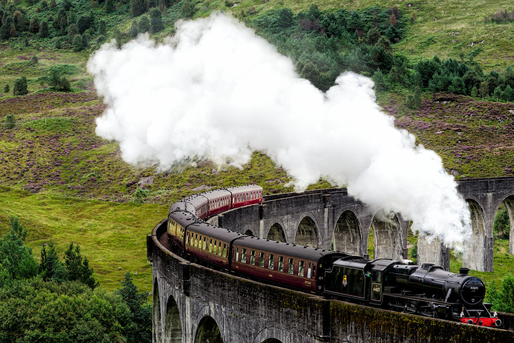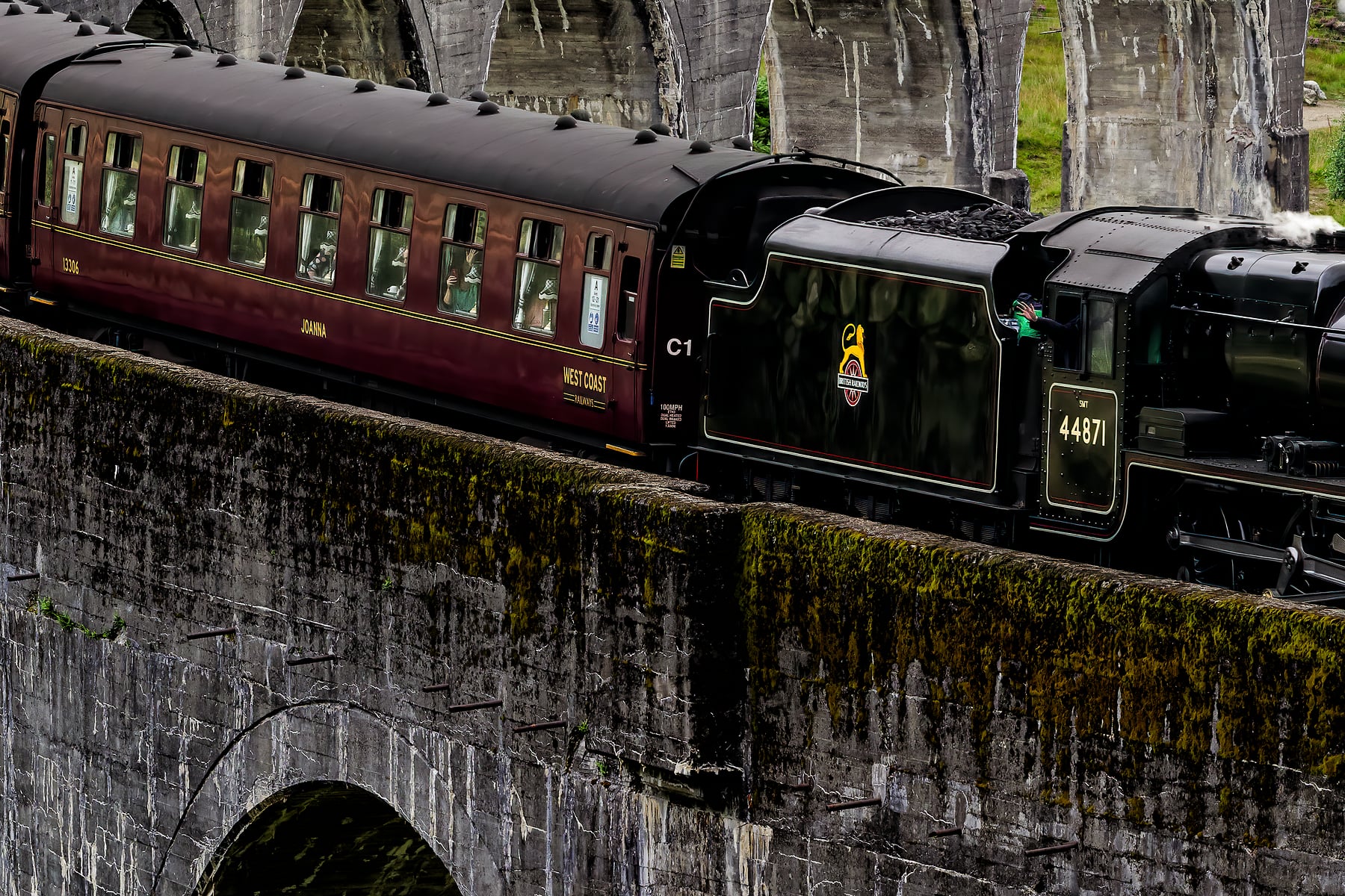 The Jacobite 44871 on the Glenfinnan Viaduct: Wide