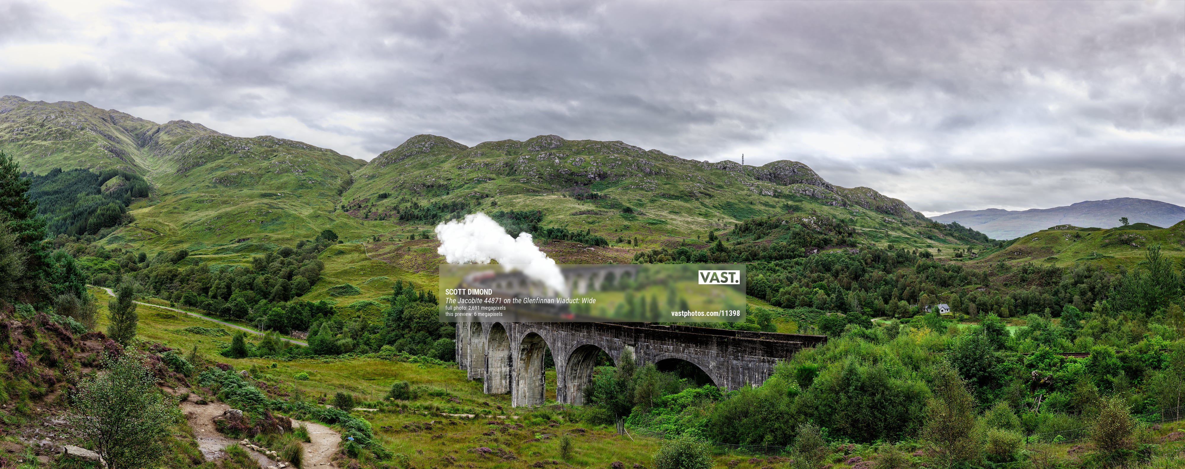 A close-up of "The Jacobite 44871 on the Glenfinnan Viaduct: Wide" by Scott Dimond: an ultra-high-resolution VAST photo.