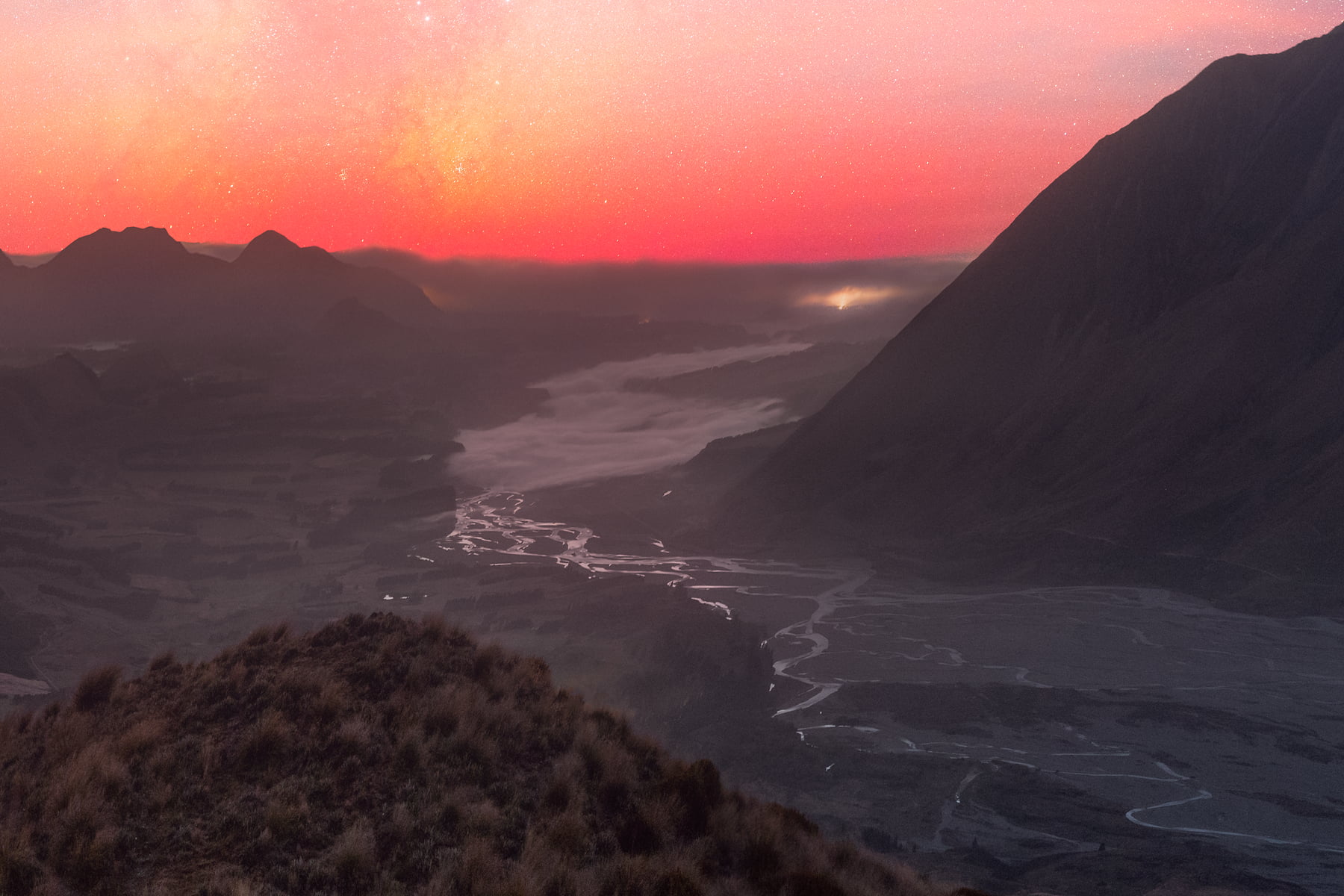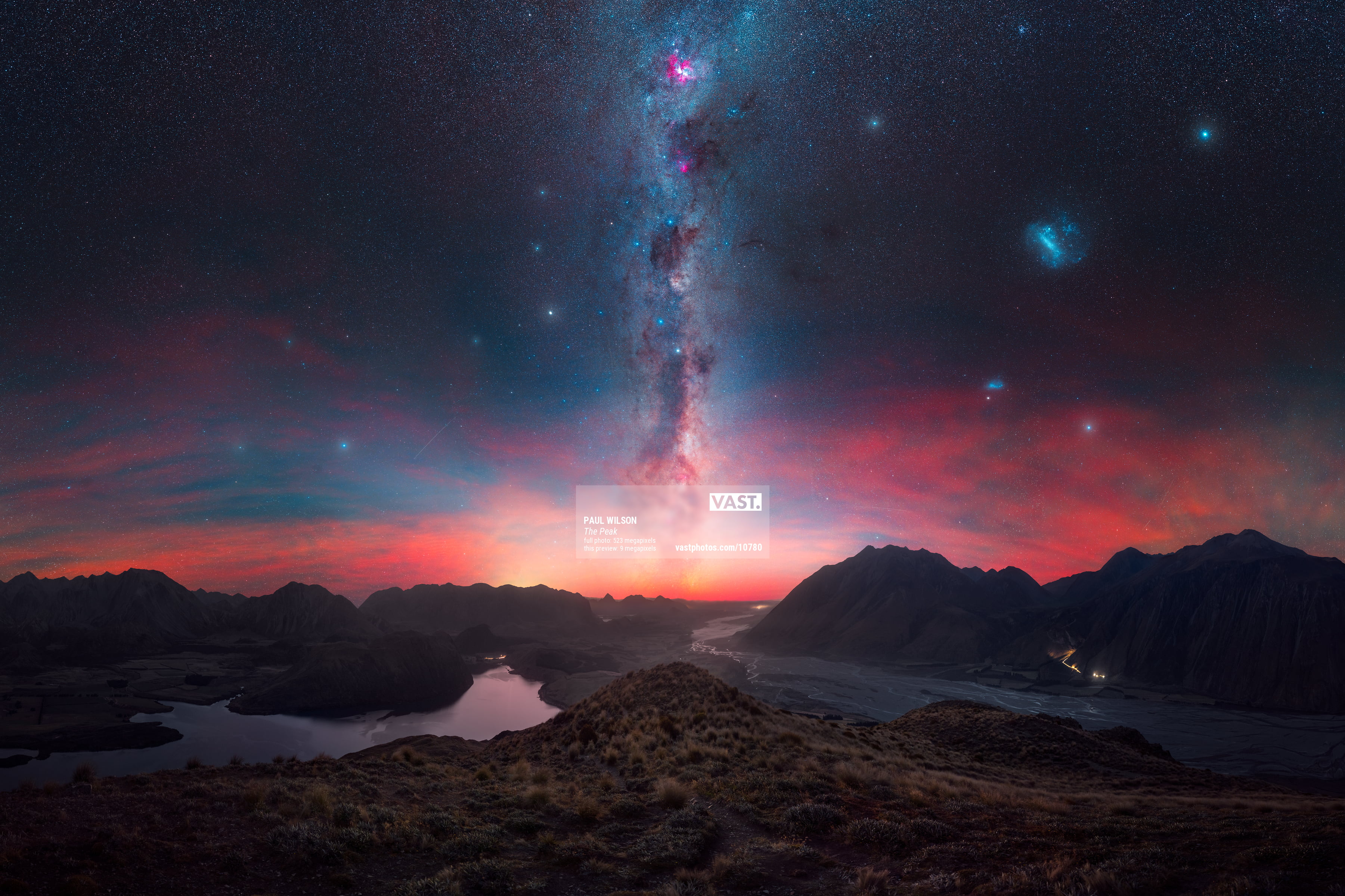 This one-shot took 4 hours of driving, 5 hours hiking, 7 hours standing on the hill, and 8 hours putting it all together, painfully stitching and blending the shots.