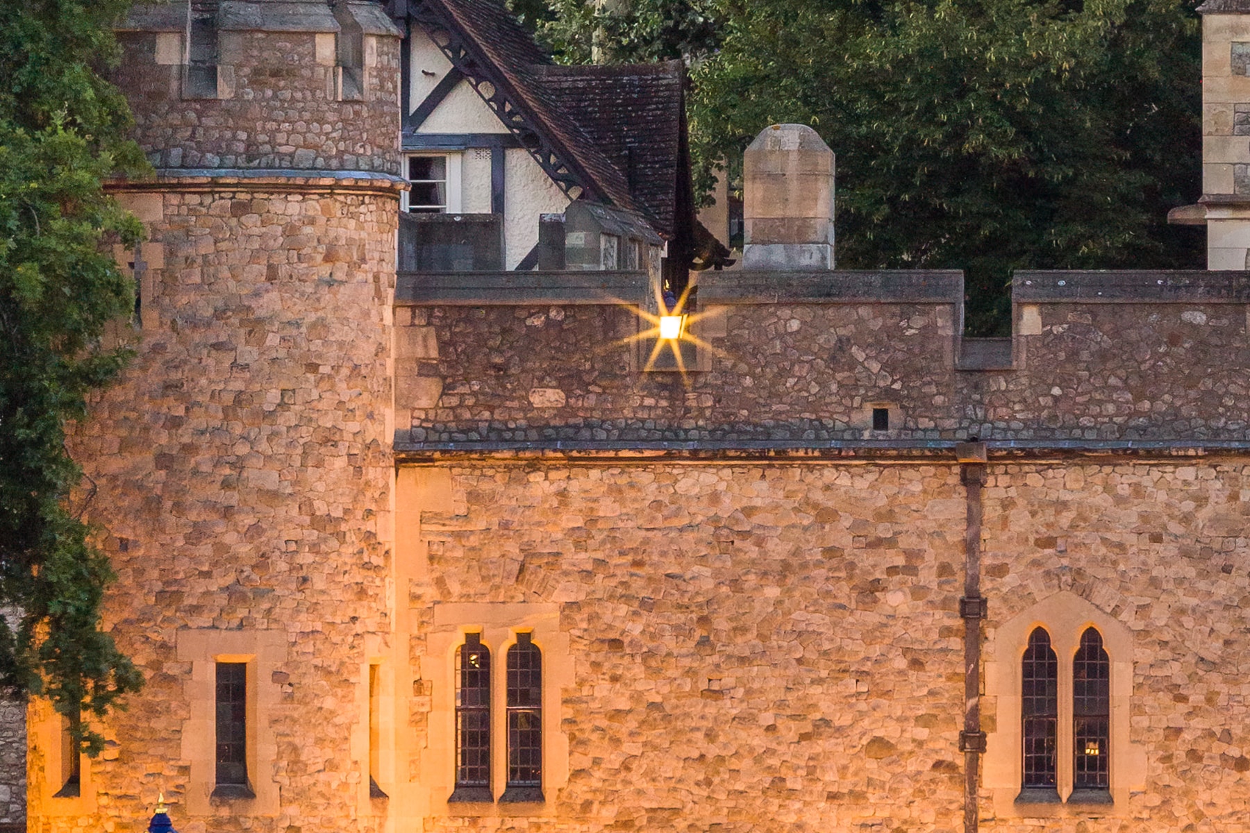 The calm waters of the Thames reflect the illuminated walls of the Tower, enhancing the serene and timeless quality of the image. The architectural details of the Tower, from its crenellated walls to its imposing turrets, are showcased beautifully, emphasising its historical significance and enduring presence in the heart of London.