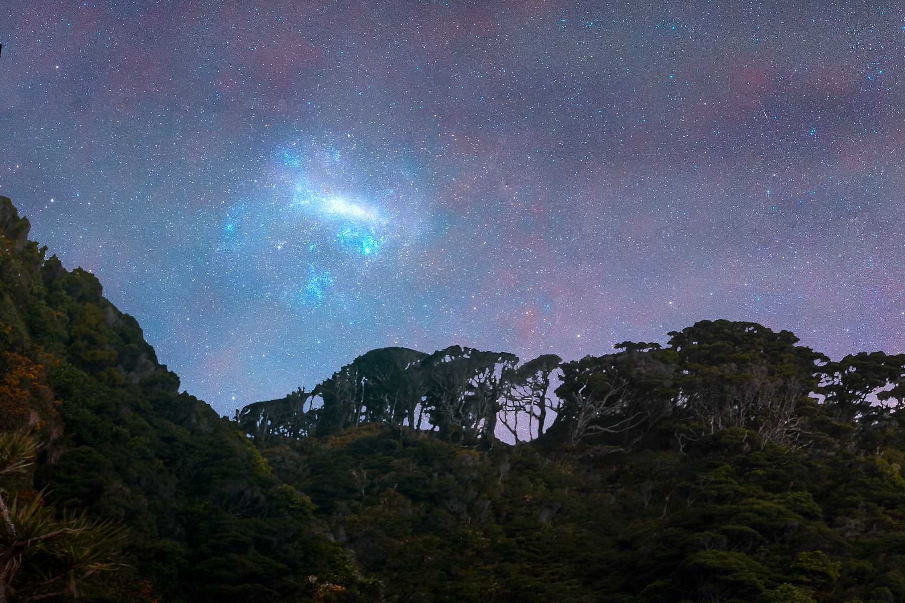 This scene captures the vibrancy of nature’s palette, with incredible airglow painting the horizon in hues of orange and magenta. To the far left, the Small and Large Magellanic Clouds make an appearance, while the core of the Milky Way blazes brightly in the centre, as if illuminating the path to the west.