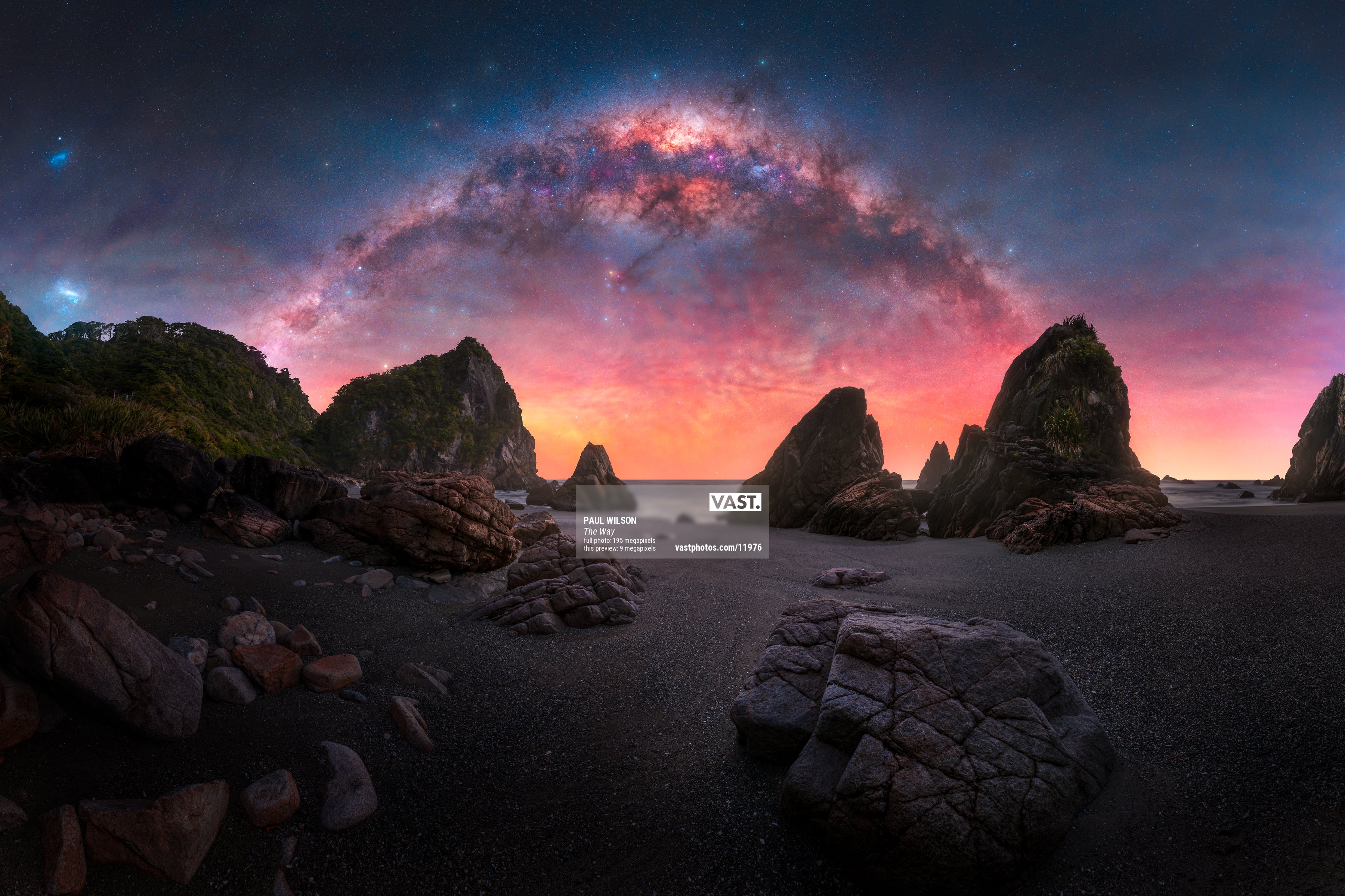 I am excited to share "The Way," a breathtaking panorama of the Milky Way arcing over a rugged coastline in New Zealand.