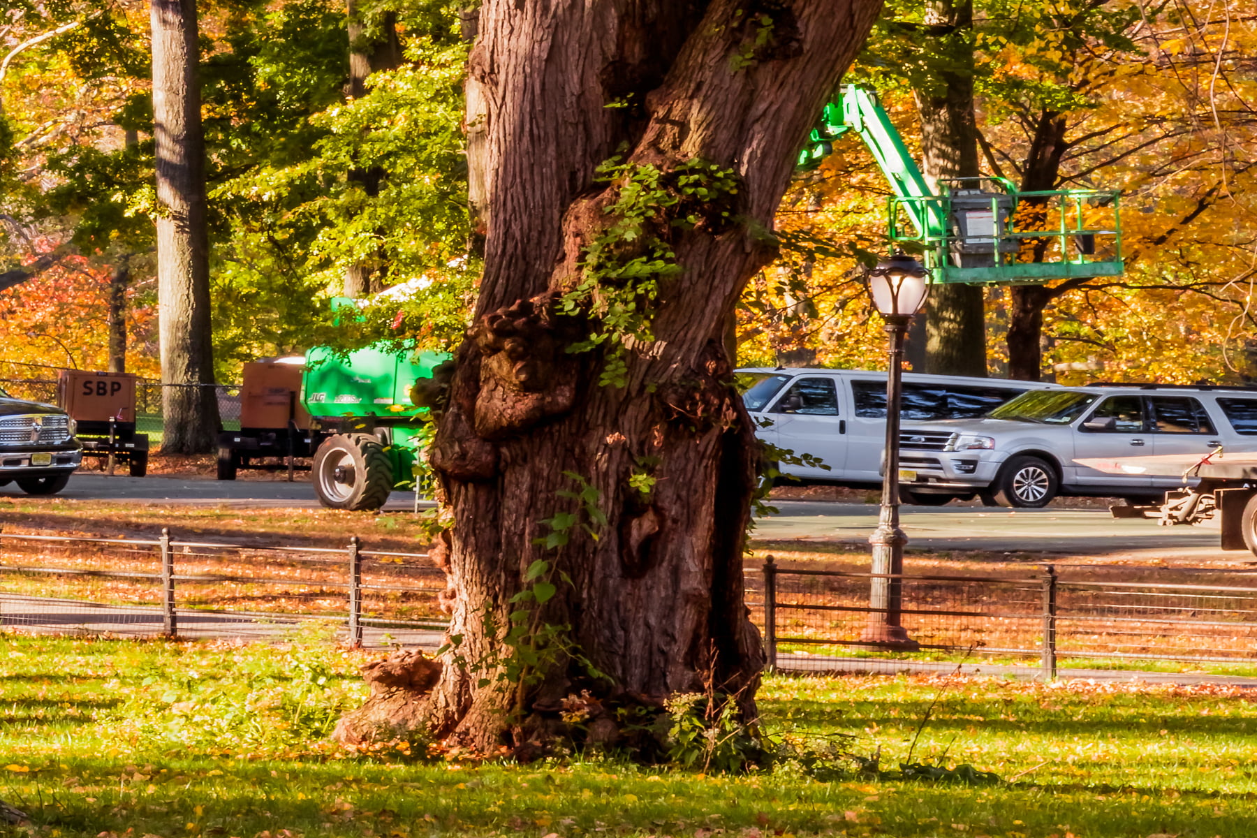 It is to this promenade that I've come every year in early November to catch the first rays of the morning sun casting into the grove of golden-orange leaves. The low-hanging sun is able to illuminate the underside of the cathedral-like canopy of autumn foliage usually obscured by shadow. This brightens and saturates the already-beautiful colors on display.