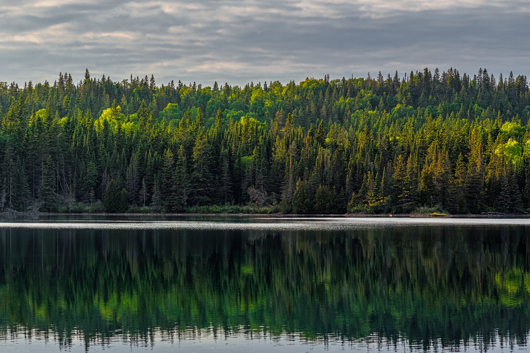 I made the short hike from Rock Harbor late in the afternoon, hoping the light would break through the shifting clouds. Isle Royale is shaped by wind, water, and isolation, and calm conditions are never guaranteed. On this day, though, the wind finally died and the harbor turned to glass. The stillness created a near perfect reflection of the treeline and clouds a quiet, symmetrical moment that captures the essence of the island: remote, understated, and shaped by the northern wilderness.