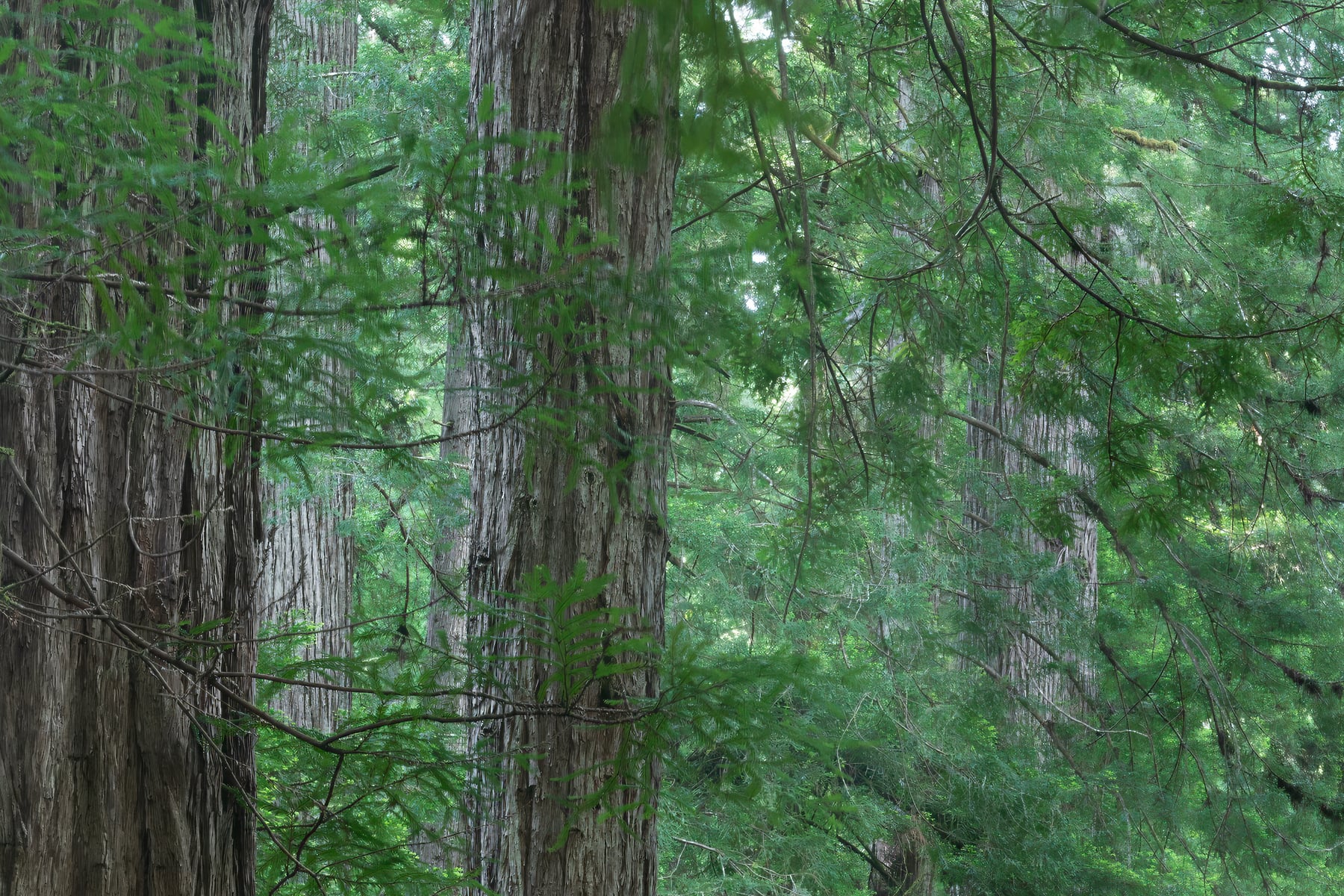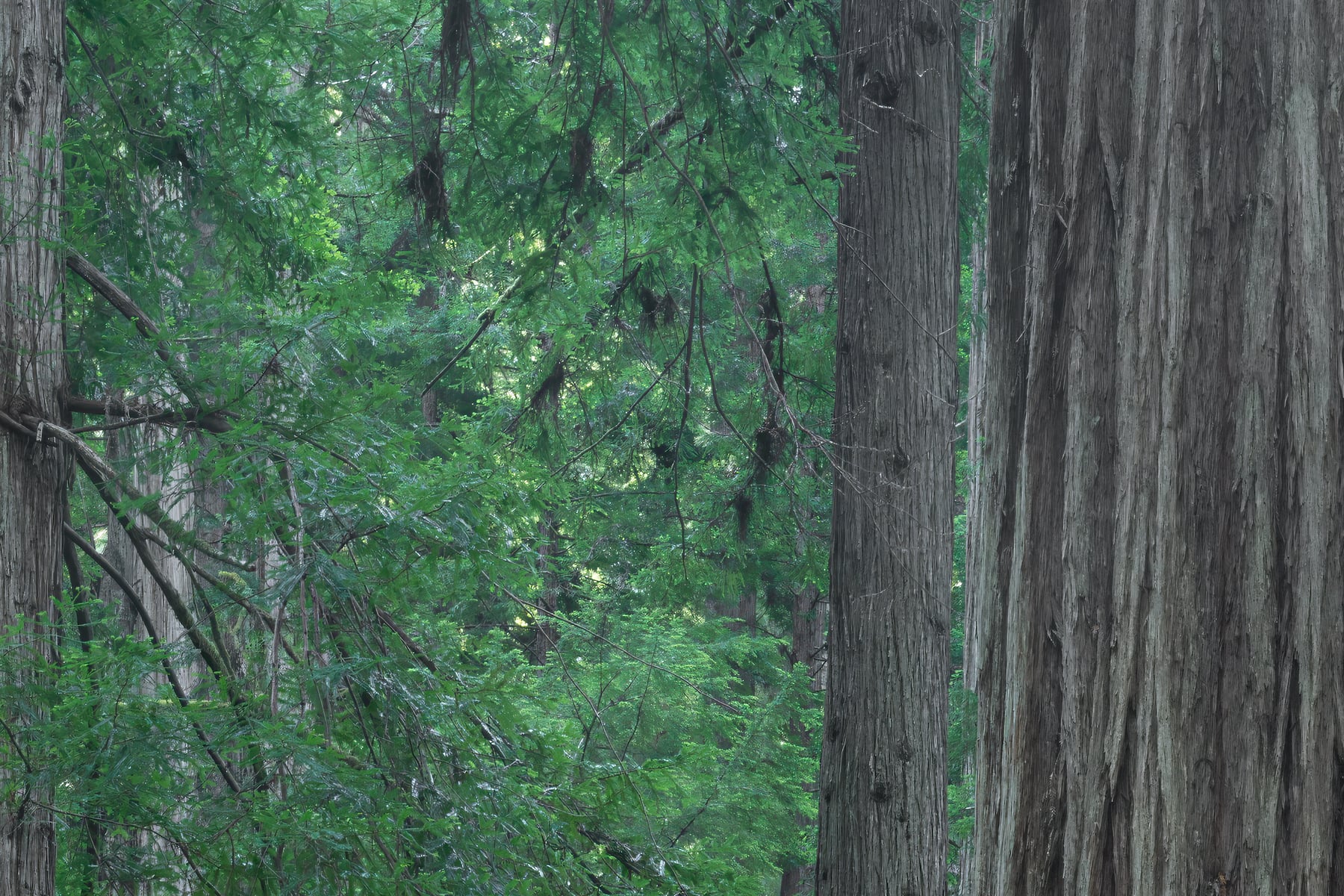 Walking through a forest of old growth trees is one of the most humbling things you can do. I made this image on a morning in June when the Spring colors have matured and everything is still "fresh" looking. Old growth forest are many things but the sense of enormity and silence are the two that come to mind for me.