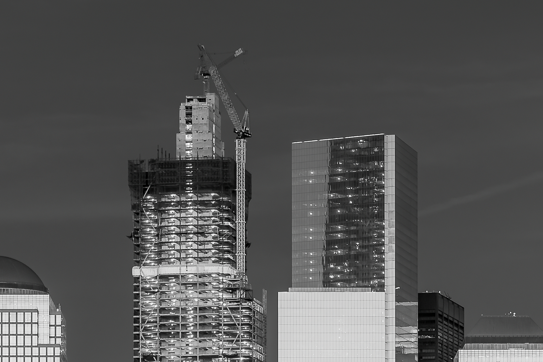On the 15th anniversary of the attacks, nature put on its most impressive display to complement the memorial. I was set up on the Jersey City waterfront with all of my gear for producing the highest resolution photo of the memorial ever created. The sky was filled with wispy hints of clouds pleasantly drifting high overhead. As the sun descended under the horizon, the illumination on those clouds rapidly disappeared and the sky darkened much faster than usual thanks to the unusually dry atmosphere of the late summer day. This quickly shifted the hue of the sky to a beautifully muted deep blue, unveiling the memorial light beams.