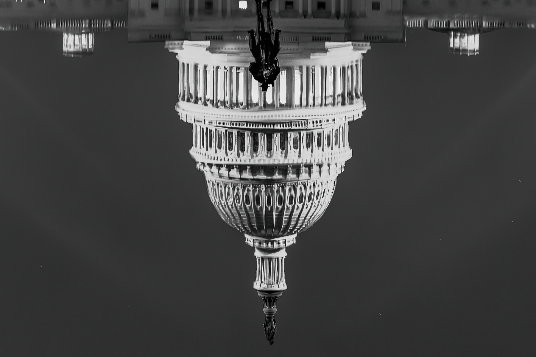 U.S. Capitol Building & Reflecting Pool in Early Spring Twilight B&W
