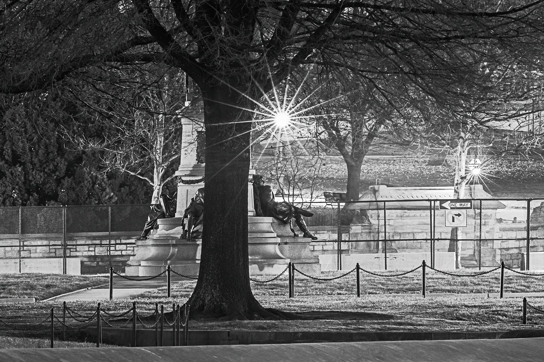 I’ve wanted to capture the U.S. Capitol Building from this direction (looking east) both at night and at sunrise with a perfect reflection in the Capitol Reflecting Pool for a long time. It’s proven to be quite a challenge. I’ve made many an early morning visit with the hopes to have the components I envisioned all come together and it has eluded me. Weather conditions aside, for years the Capitol has undergone restoration with scaffolding installed. It was during a window around a presidential inauguration wherein all scaffolding was removed that I was able to capture this photo. Finally came a morning with low forecasted winds, so I decided to start a day primarily dedicated to capturing photos of the Cherry Blossoms in peak bloom with a sunrise-shot at the Capitol. I arrived elated this calm morning at 4 AM to a see a still-reflecting pool and started my series of images to take a twilight photo and a sunrise photo after. Regrettably I didn’t start with the fickle reflection and by the time I made it to those series of images, the sun had almost finished rising, and geese were flapping around in the reflecting pool itself, so 0 for 2 that morning.