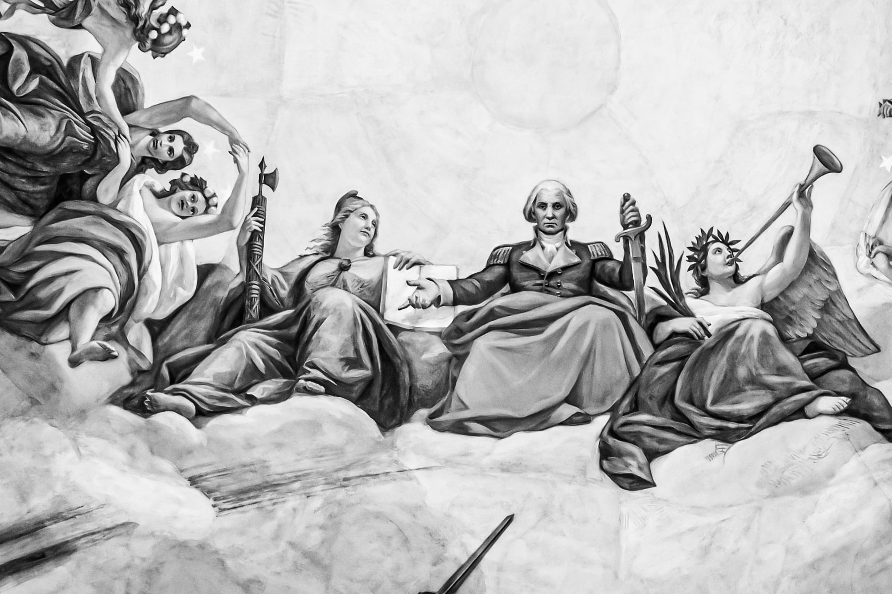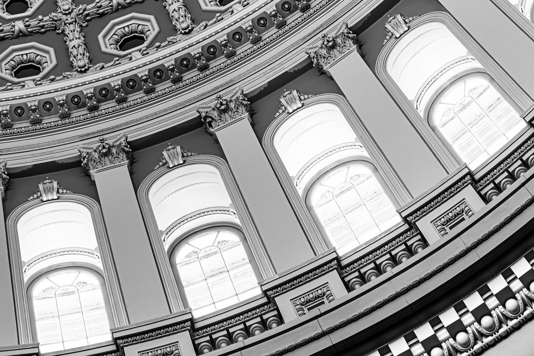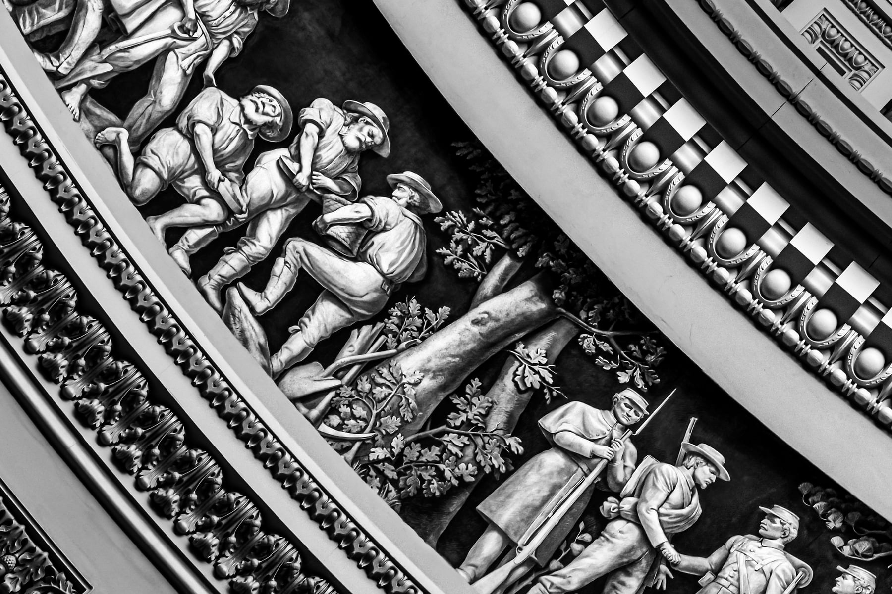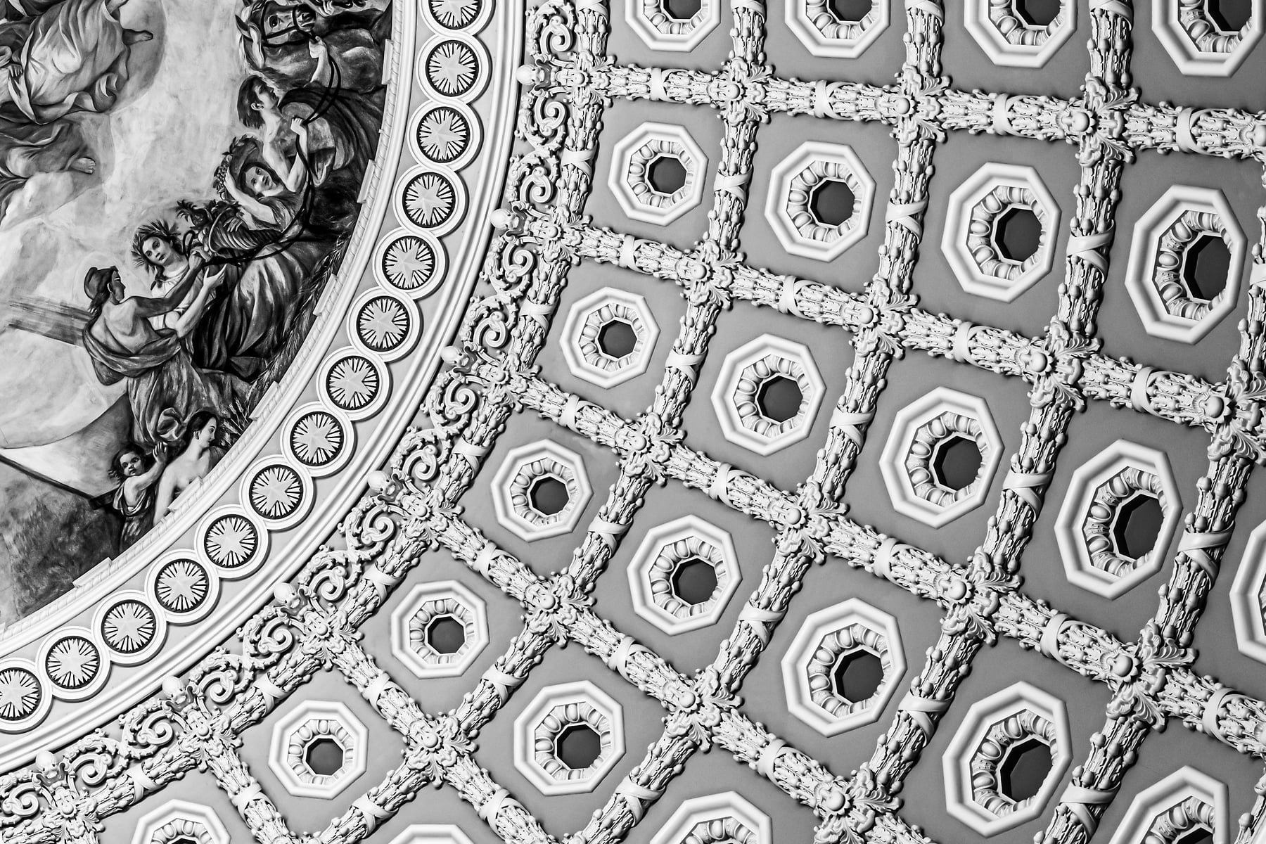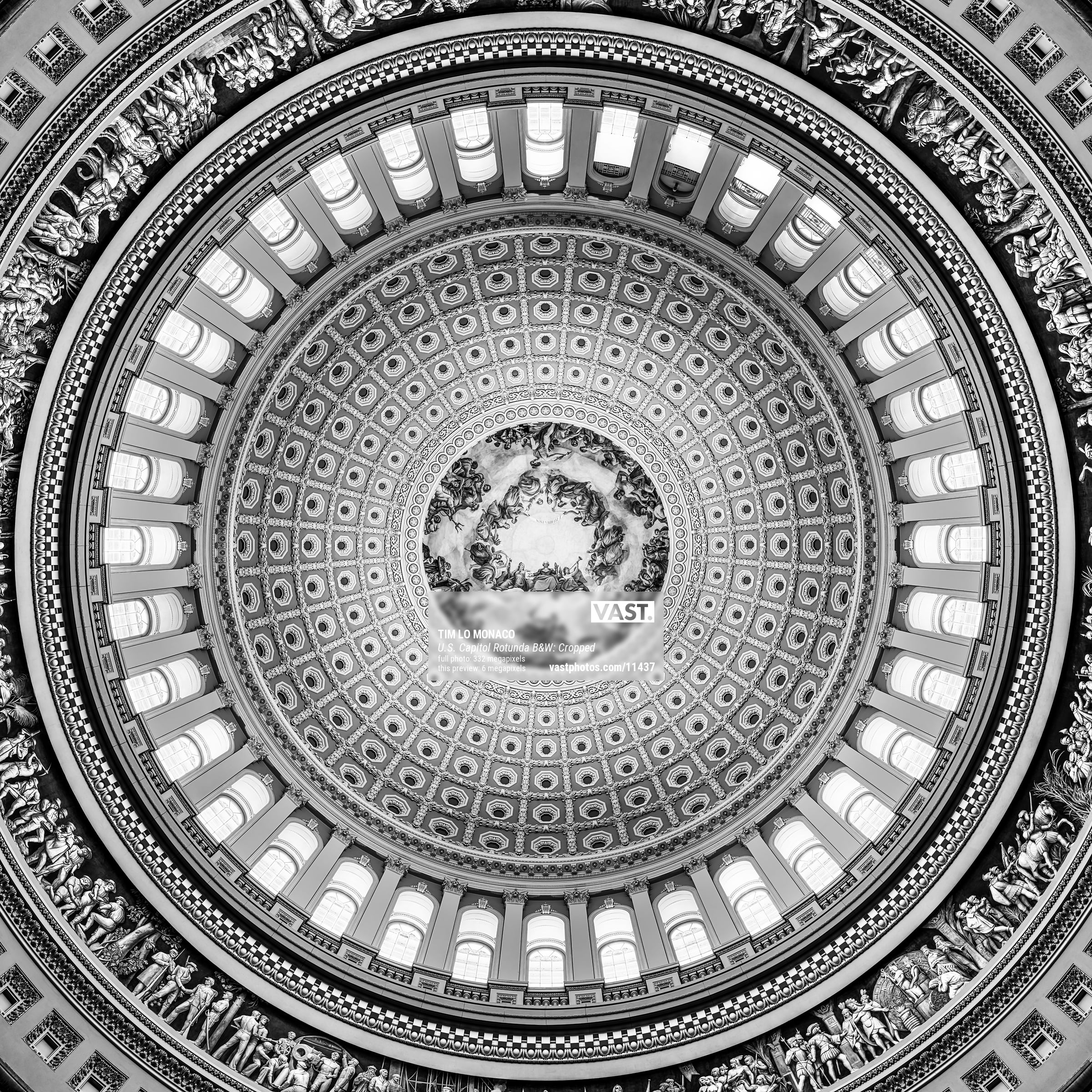 A close-up of "U.S. Capitol Rotunda B&W: Cropped" by Tim Lo Monaco: an ultra-high-resolution VAST photo.