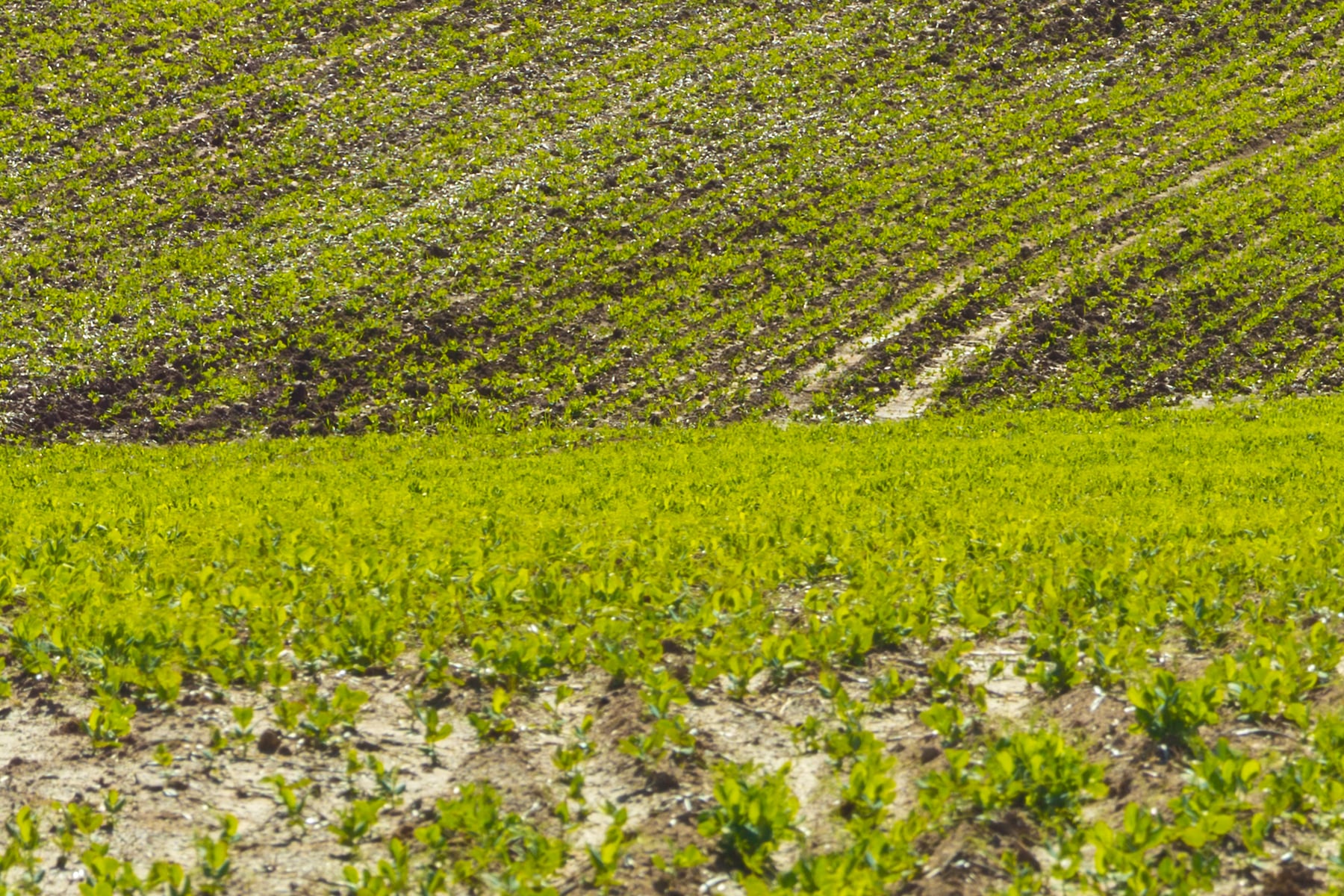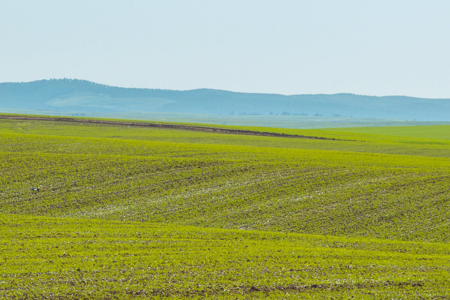 The gentle undulations of the land add a subtle texture to the scene, emphasising the natural contours and rhythm of the agricultural landscape. The absence of structures or human activity enhances the feeling of peaceful solitude, allowing viewers to appreciate the unspoiled beauty of the countryside fully.