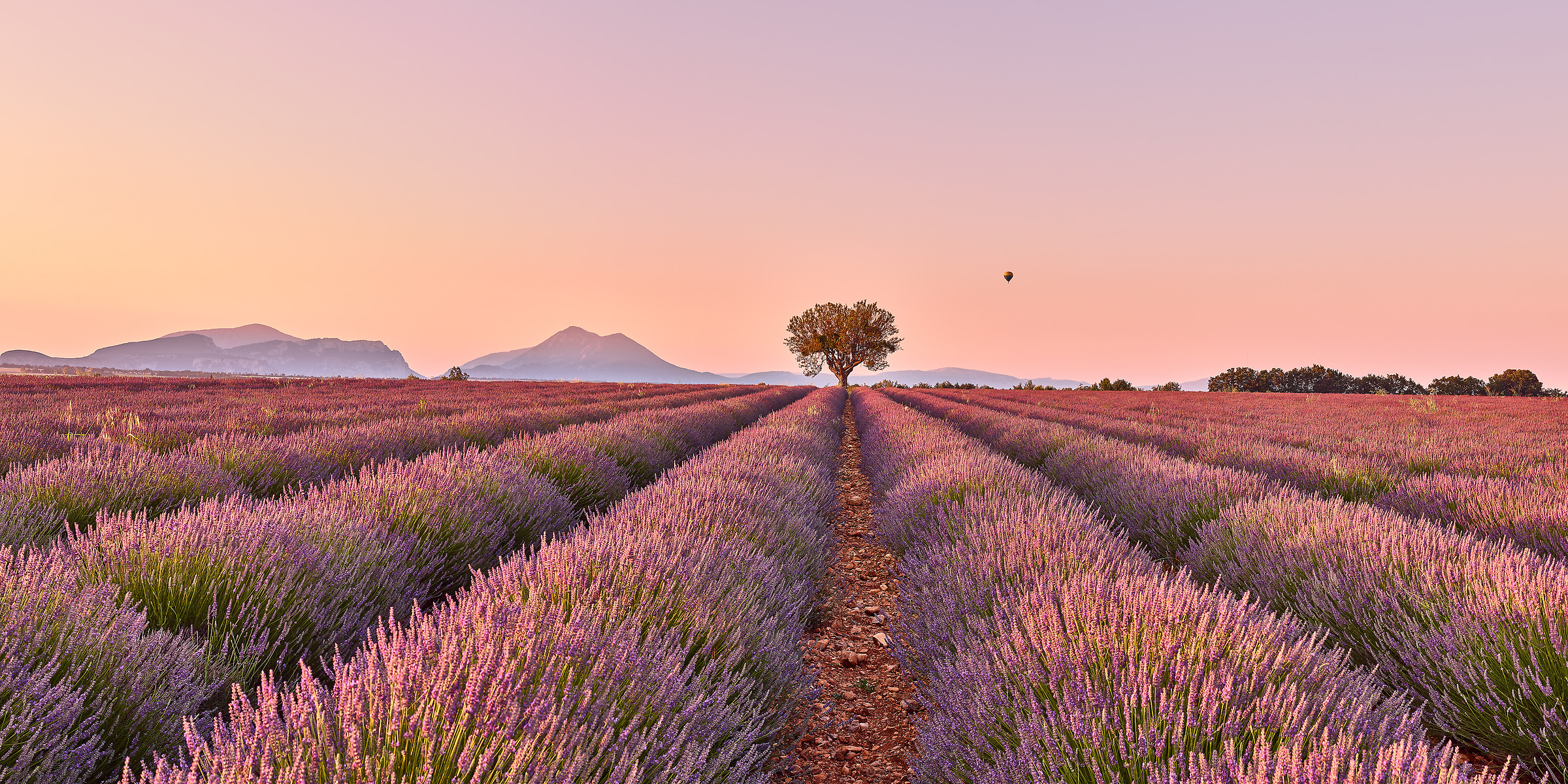 This tree on the Valensole Plateau is probably one of the most photographed trees in the world because of its symmetry and its lonely position in the middle of this well-kept lavender field. Wanting to avoid the crowd of photographers, I got up at 3:00 am, packed up my gear, and headed out to the field in total darkness. Being there early was worth it because I was able to set up before any other photographer arrived. Later, as the sun rose above the horizon, I was rewarded with the pleasant surprise of a hot air balloon taking off, and I was able to capture it at the same moment the sun hit the mountain ridge in the distance, grazed across the lavender in the foreground, and illuminated the tree.