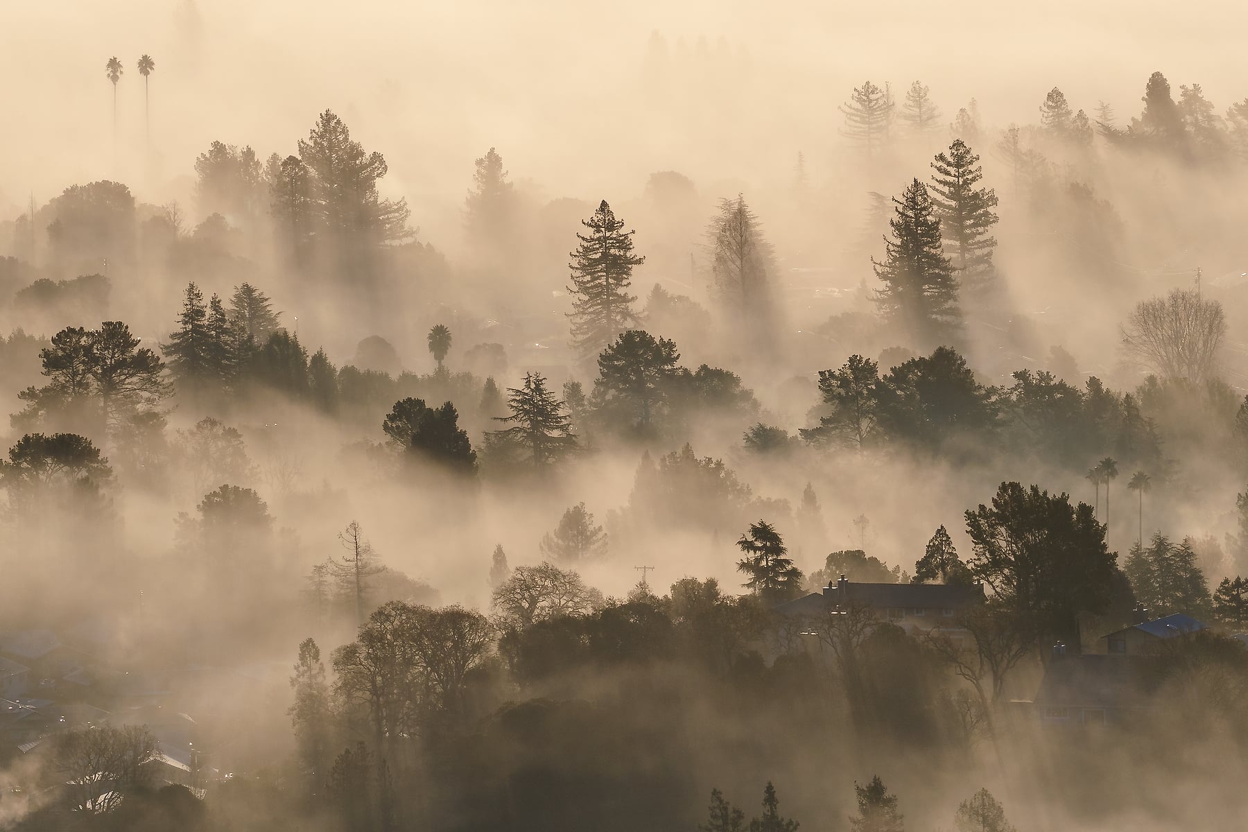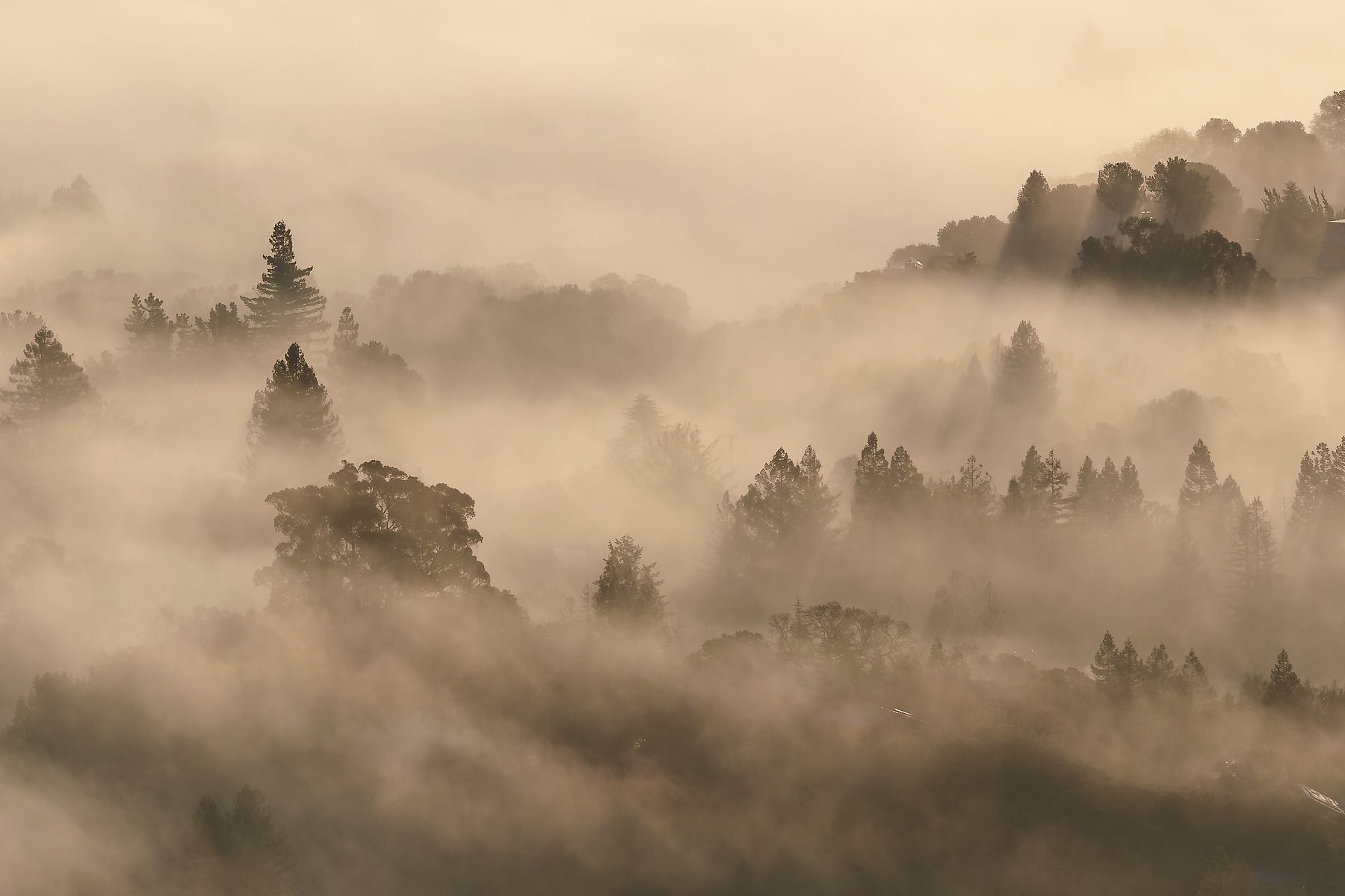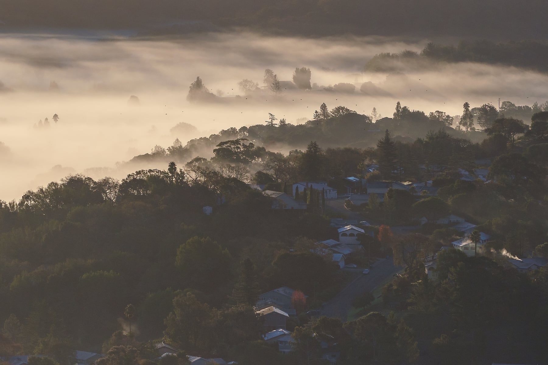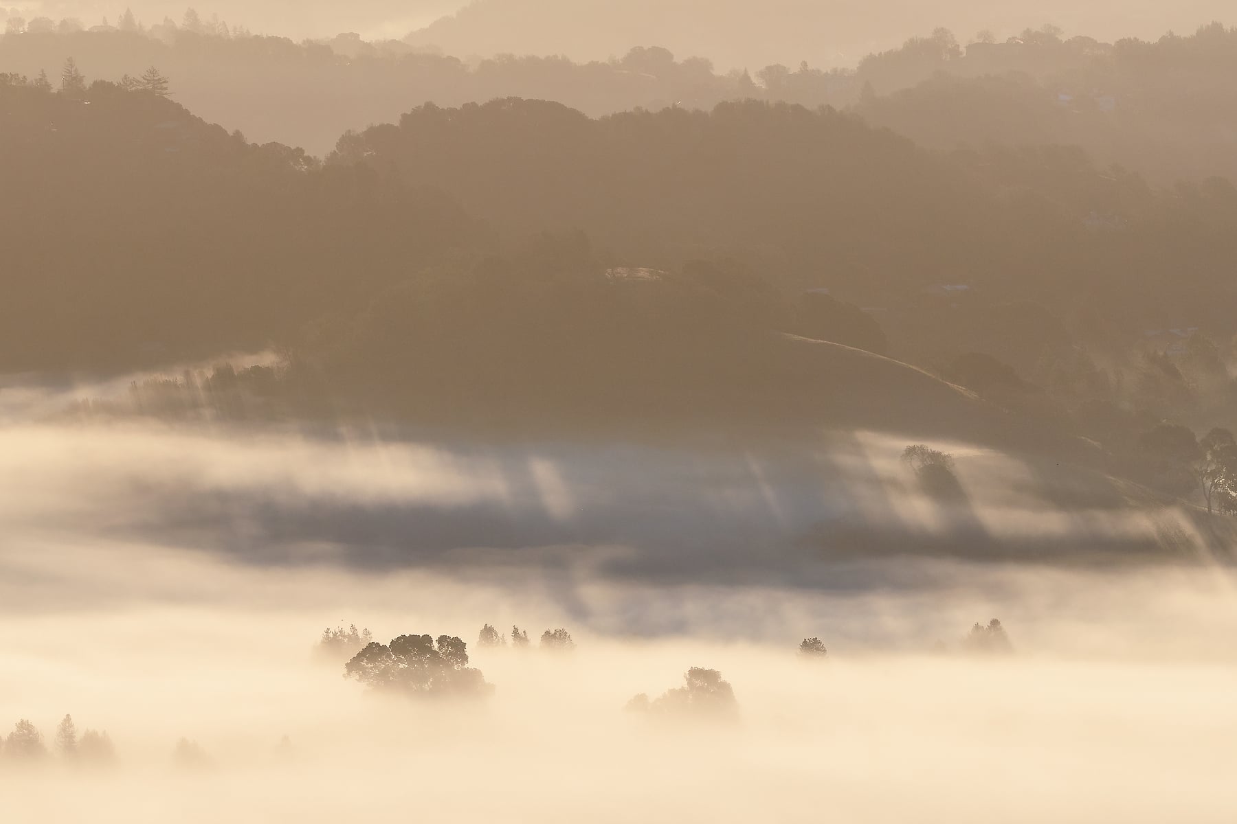 The hills of the Bay Area are endless sources of inspiration, for photography, hiking, and wandering. On this brisk morning, I decided to go for a hike at the crack of dawn, to get above the fog inversion and see what the first light would bring. It was quite a treat, and the clear air allowed me to capture it in high resolution as a VAST photo! It was amazing to watch the fog changing constantly, with the trees and homes of my hometown poking above.