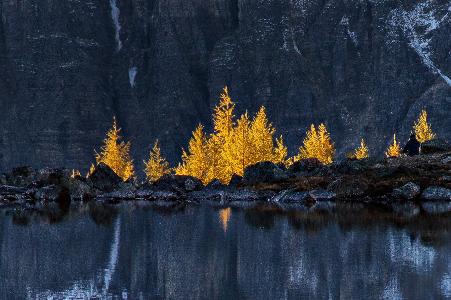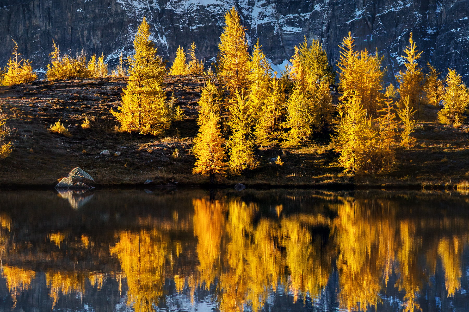 One of the memorable experiences was that morning hike to catch first light, my warm breath lingering in clouds amongst the icy air. A few four-legged friends welcomed me on my ascent, darting away as I got closer. Deer: beautiful, but ever elusive. Upon reaching the treeline and the beauty beyond, I realized this union of valley and mountain made for a perfect picture. After a search for the right alpine lake, I set up my tripod amongst its chilly banks. Thanks to the windless, still air, I was able to capture the mirrored surface of the water, and the beauty reflected within.