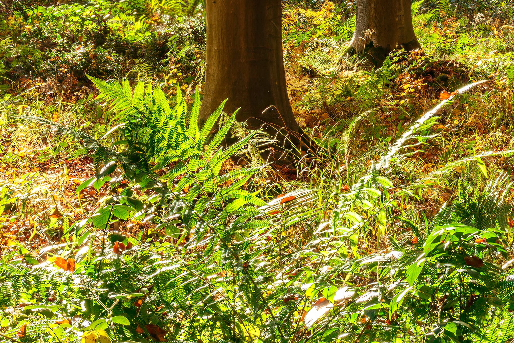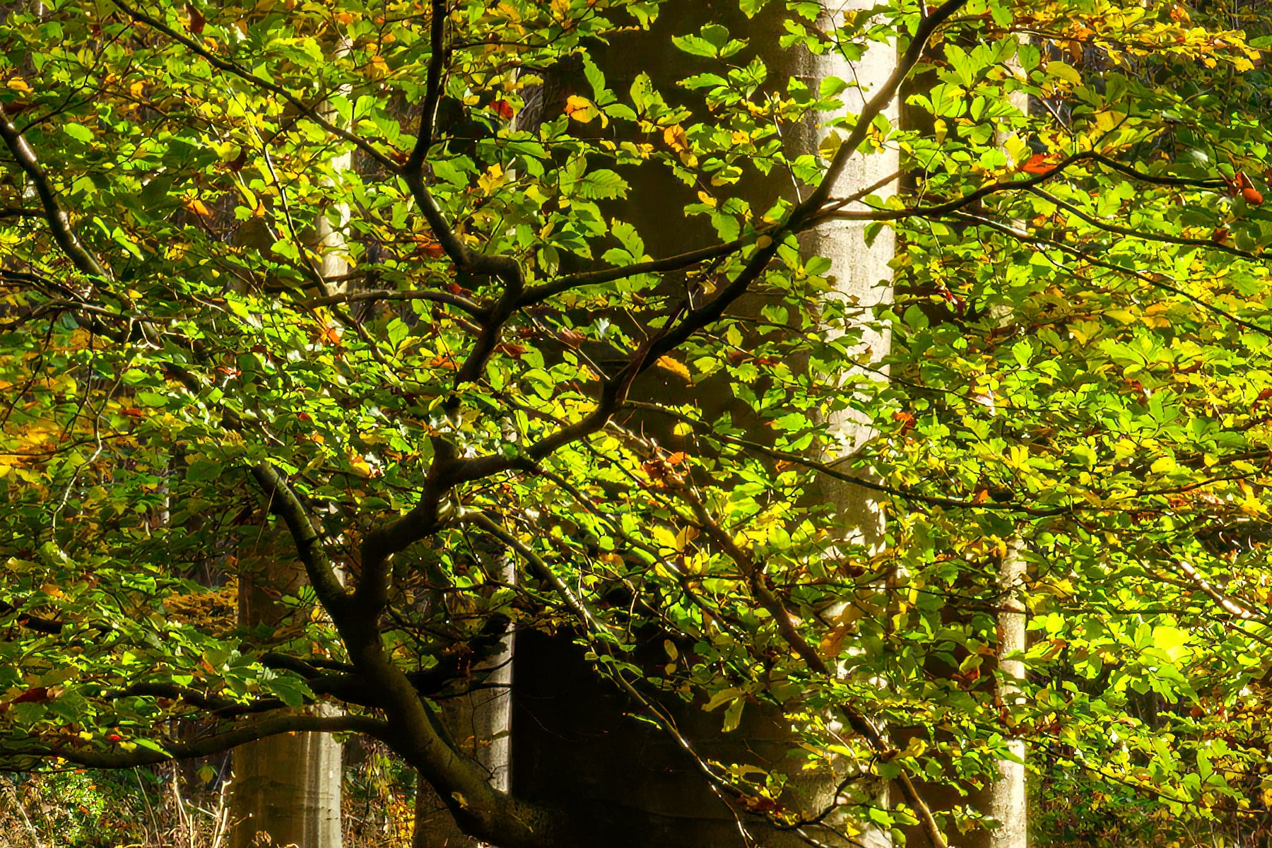 The scene exudes a sense of tranquility as the soft rustling of leaves fills the air. The crisp autumn breeze carries the scent of earth and foliage, enhancing the immersive experience of walking through this woodland paradise. Layers of fallen leaves blanket the ground, adding depth and texture to the serene landscape. The interplay of light and shadow creates a mesmerizing dance, accentuating the intricate details of each leaf and branch.