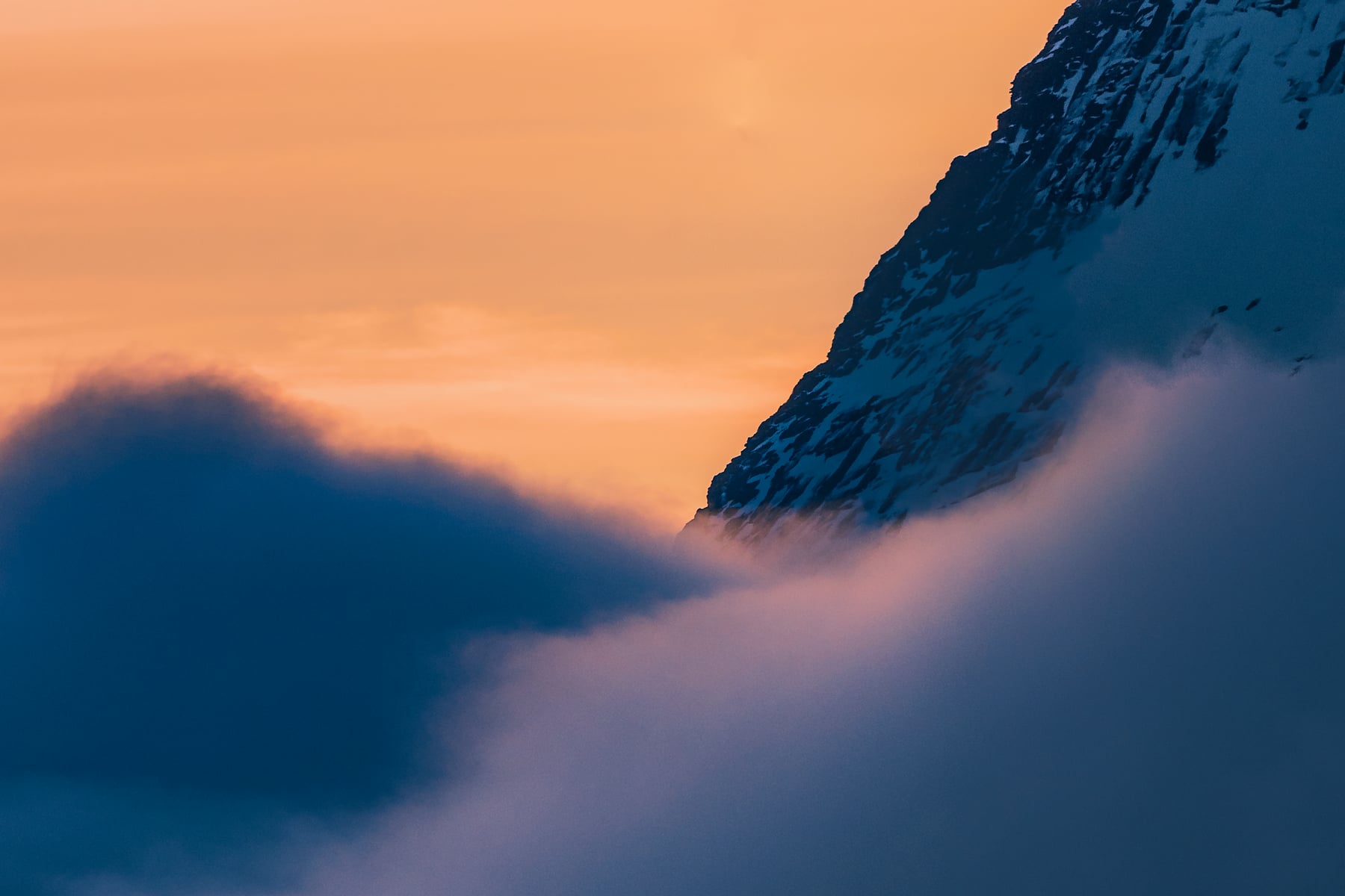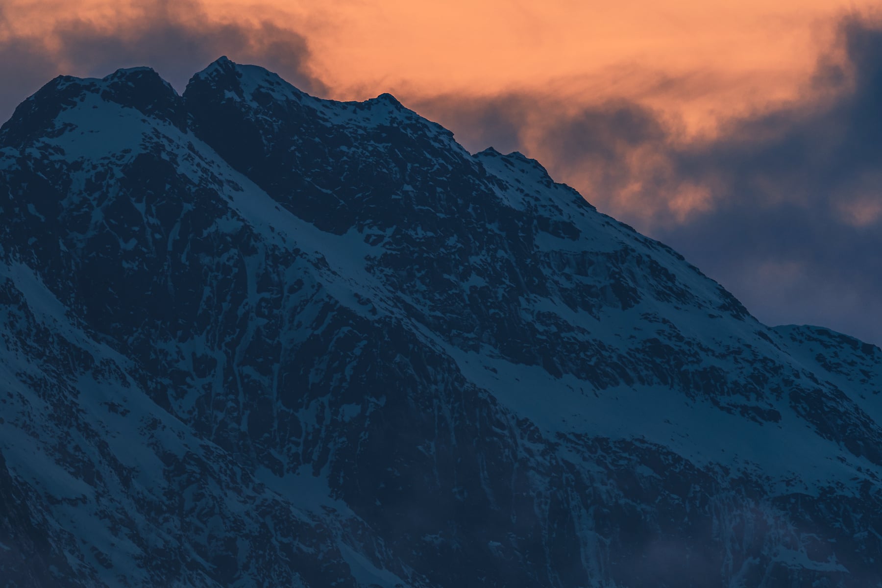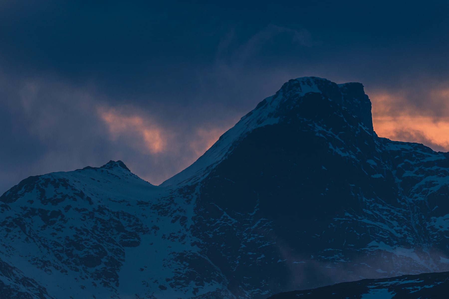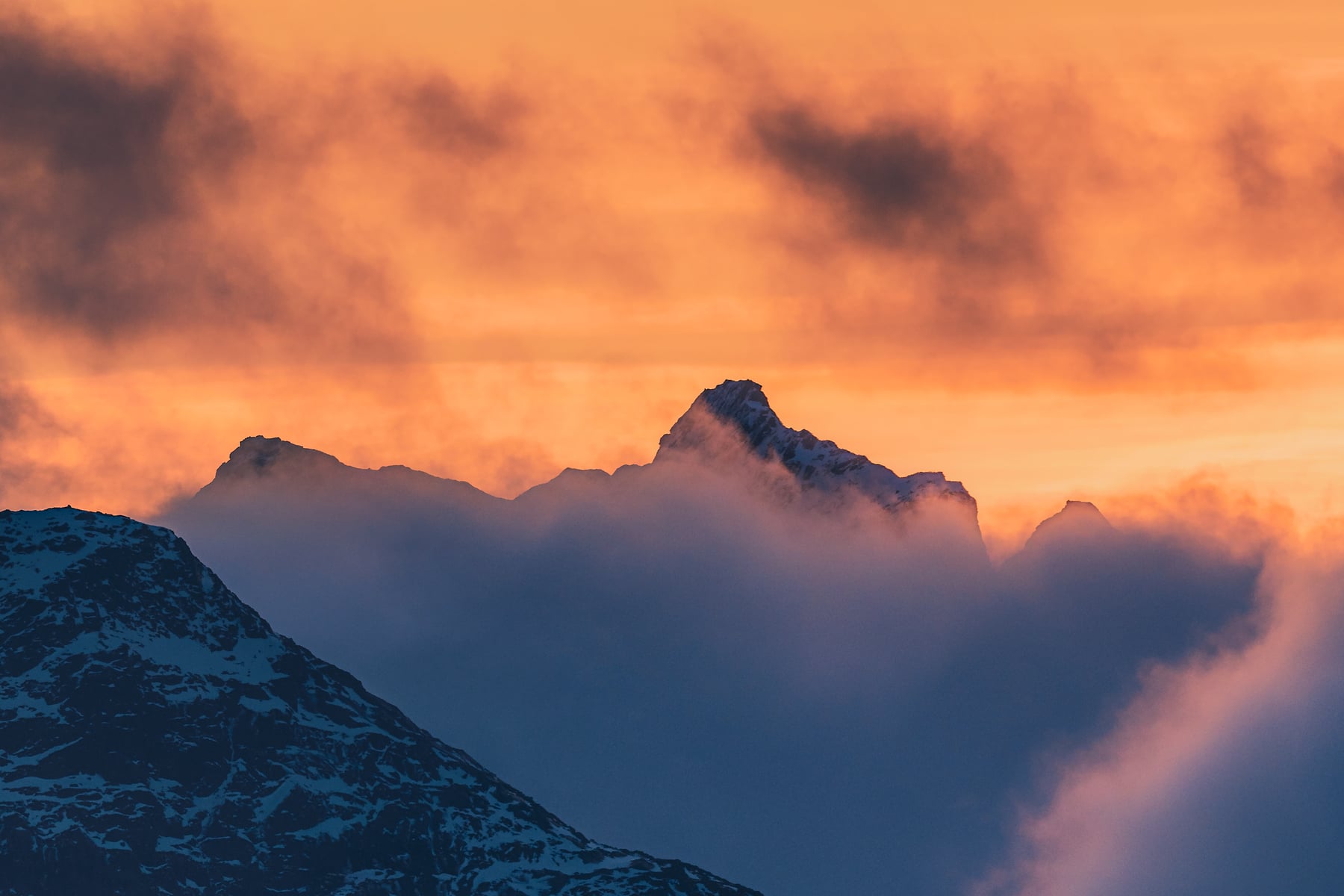 The picture was taken in front of the Fredvang Bridges (Norwegian: Fredvangbruene) after a stormy day when the clouds showed the fjord for a moment in the wonderful evening light shortly before a long winter night.