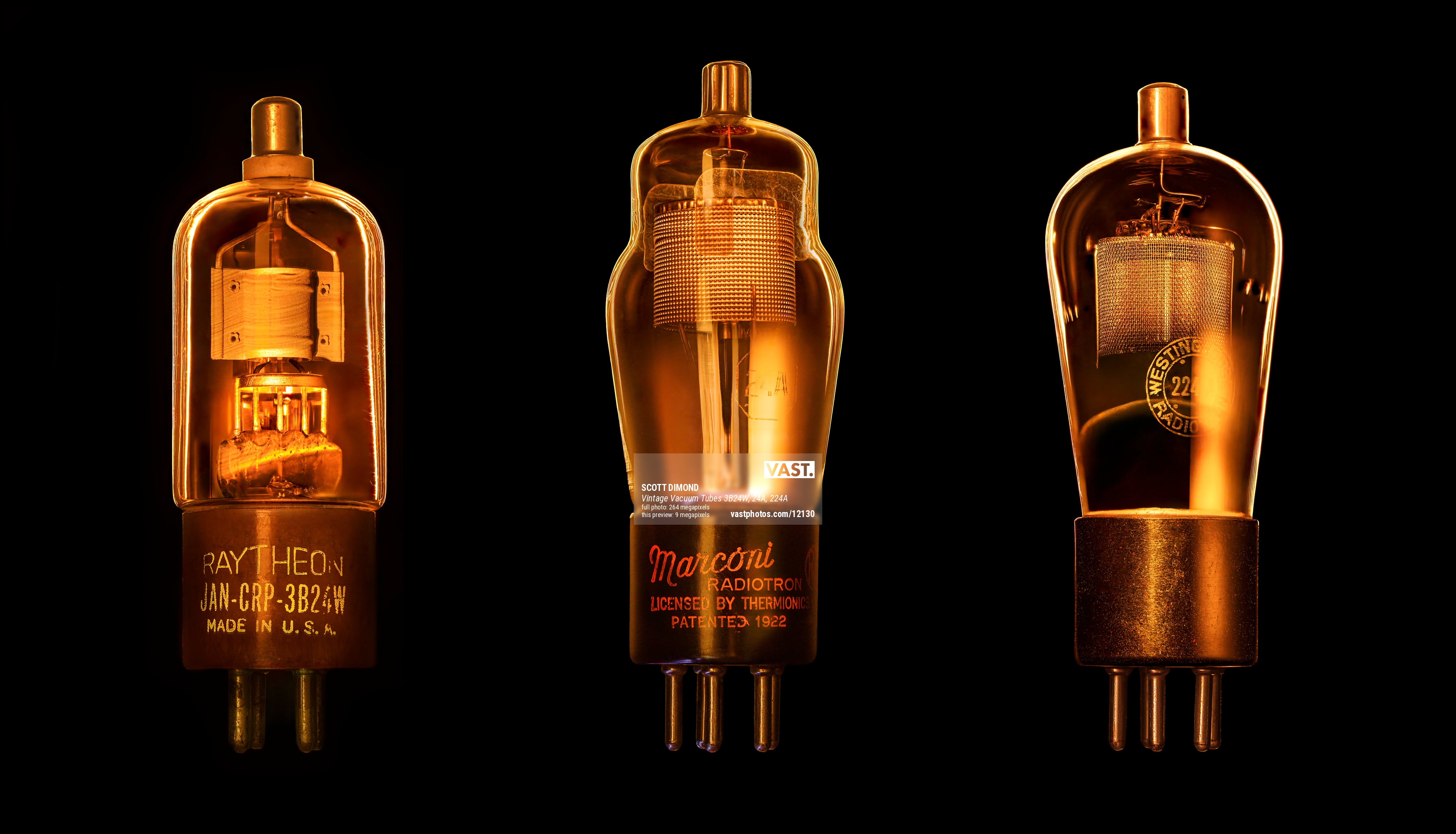 Photographer Scott Dimond had always thought that vintage vacuum tubes would make a great photographic subject, but he never pursued the idea until he came across a treasure trove of old tubes at a 2nd hand store. The result is an ongoing project showcasing vacuum tubes using various photographic techniques including backlighting, light painting and focus stacking. Where possible, Scott also energized the heating cathode within the tubes using a laboratory power supply. To determine which pins at the base of the tubes were used by the heating element, he needed to identify the tubes and then research them to find the manufacturer's original data sheets. Once found, those data sheets provided the information on the pin configuration and voltage/amperage that he needed to apply to activate the heating cathode.