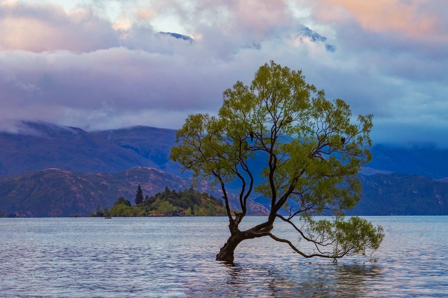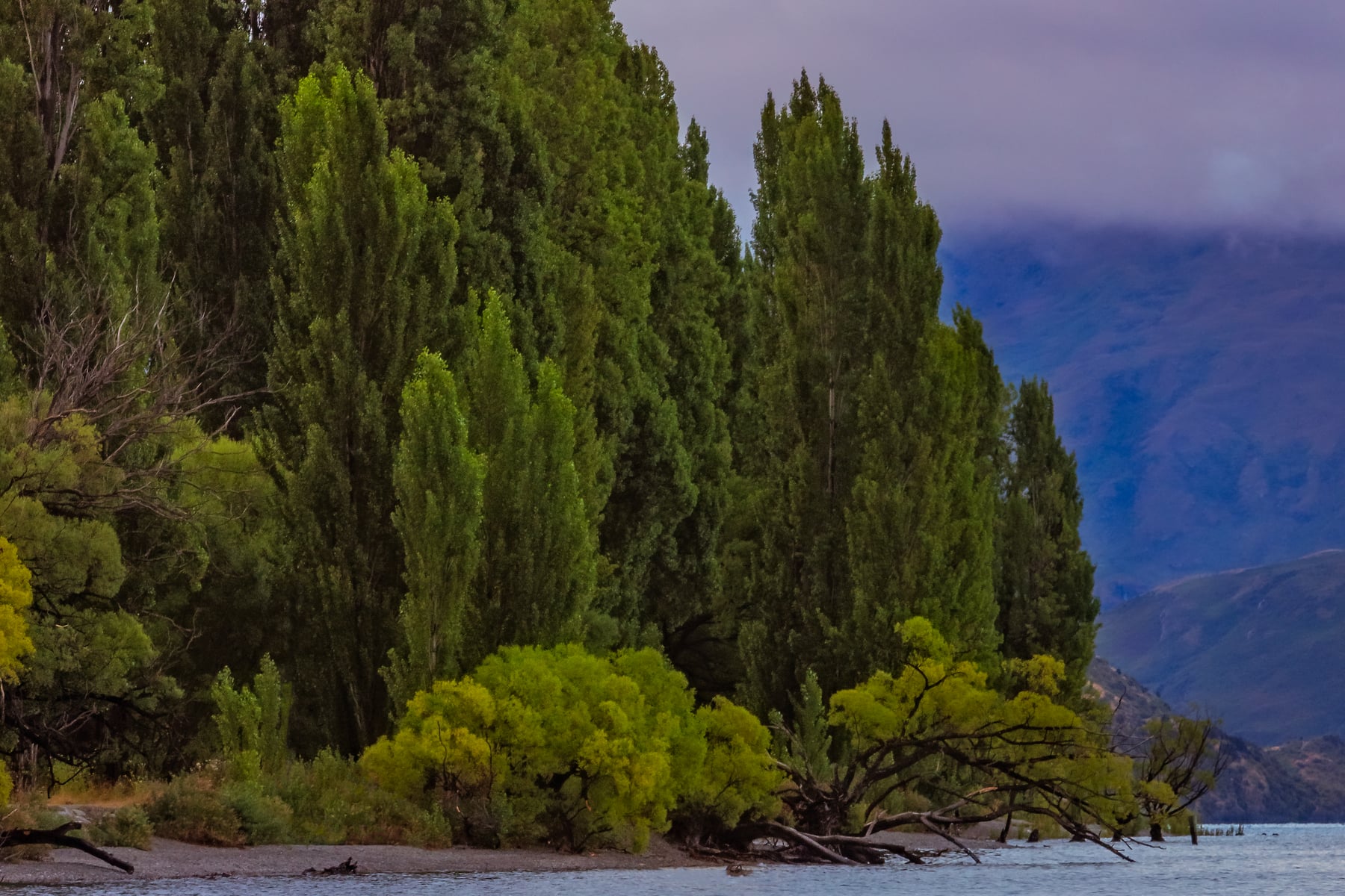 The day I shoot this photo it had poured rain the entire day as we traveled from Queenstown to Wanaka. I had reserved a RV campsite about half a mile up the road from the tree's location. The rain stopped about the time we arrived at 5pm that evening. By sunset some of the clouds had cleared so we walked down to the lake.