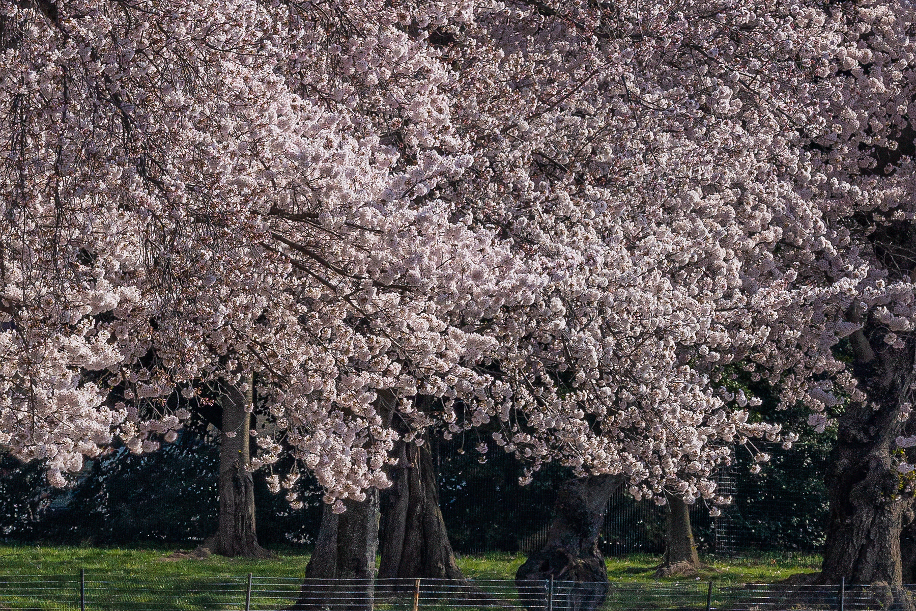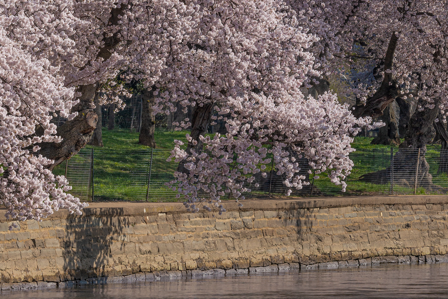 The iconic Cherry Blossoms of Washington, D.C. in their peak bloom. Visitors will find mostly Yoshino Cherry Trees, but they will also find Kanzan Cherry, Akebono Cherry, Usuzumi Cherry, Black Cherry, Choke Cherry, Higan Cherry, Okame Cherry, Oshima Cherry, Snowgoose Cherry, Sour Cherry, Sweet Cherry, and a handful of other varieties. The cherry trees in bloom mark the first real sign of spring in the area. The views along with the warmer weather make it a pleasure for tourists and locals alike to get out and enjoy downtown Washington, D.C. and the National Mall.