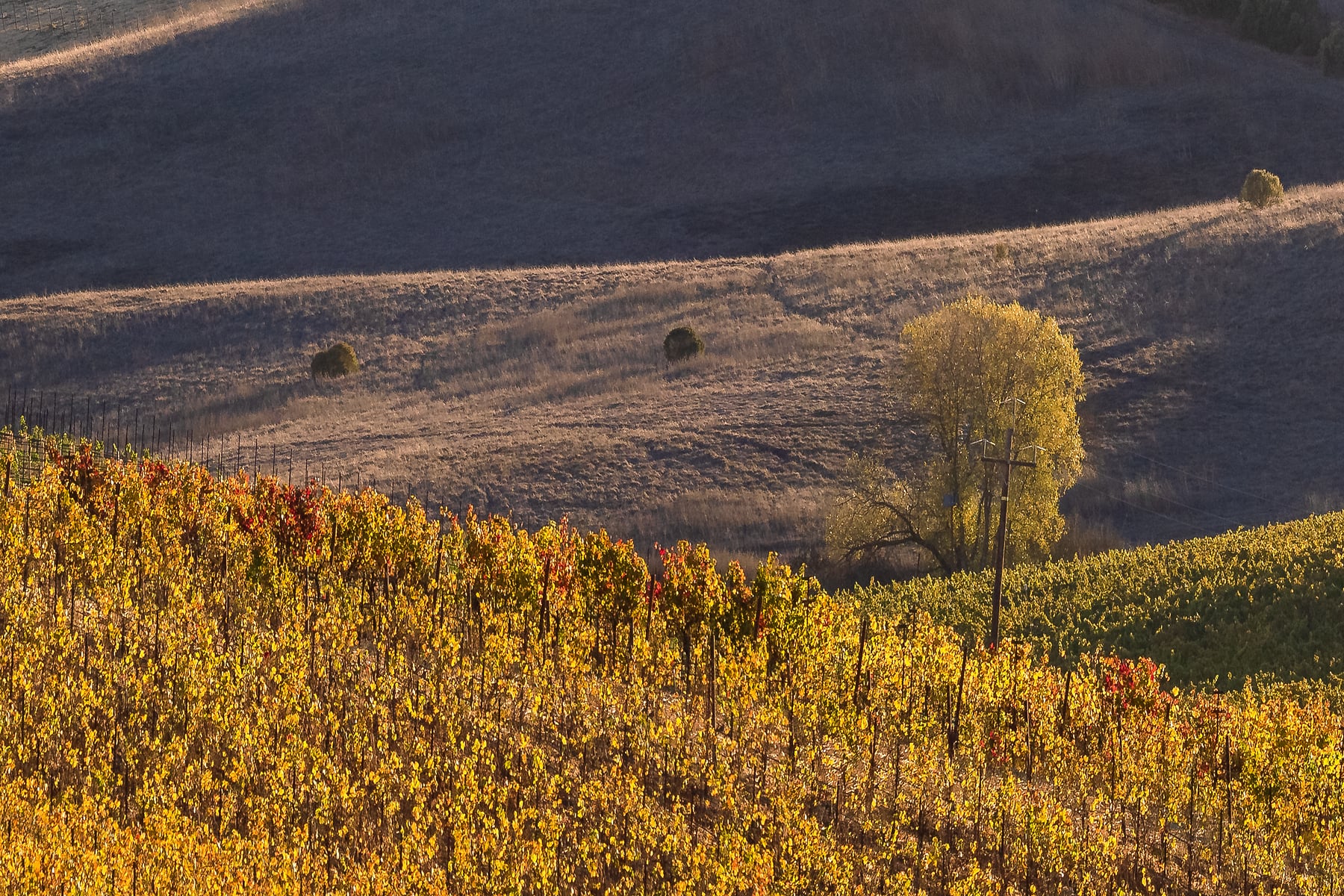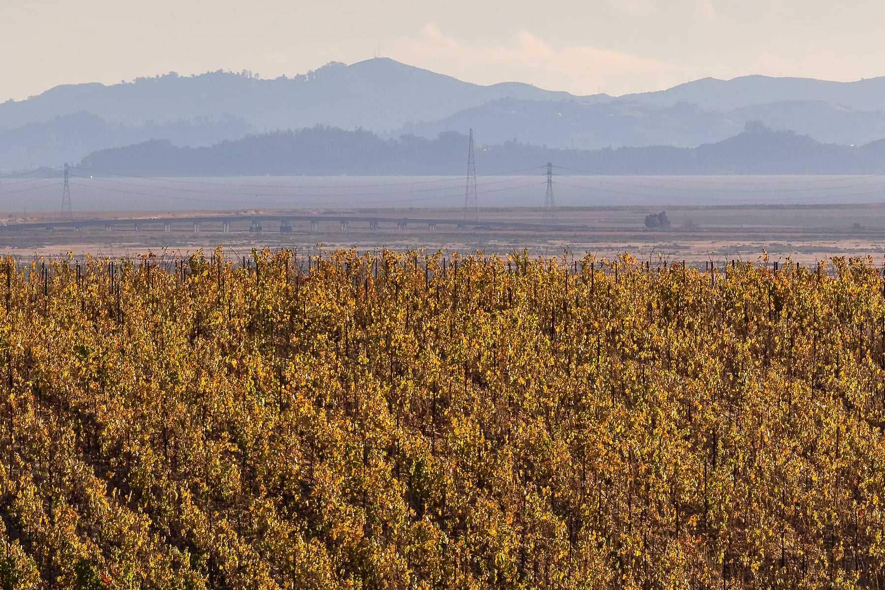 I took this photo on assignment for a client in wine country, in the lovely Carneros region of the North Bay. This region is known for gentle rolling hills, stunning views, and special wines. I made sure to prominently capture Mt. Tamalpais in the center to highlight the sense of place! Oh, did I mention the whole scene is draped in fall colors, too?! Well, you probably didn't need me to tell you that. :)